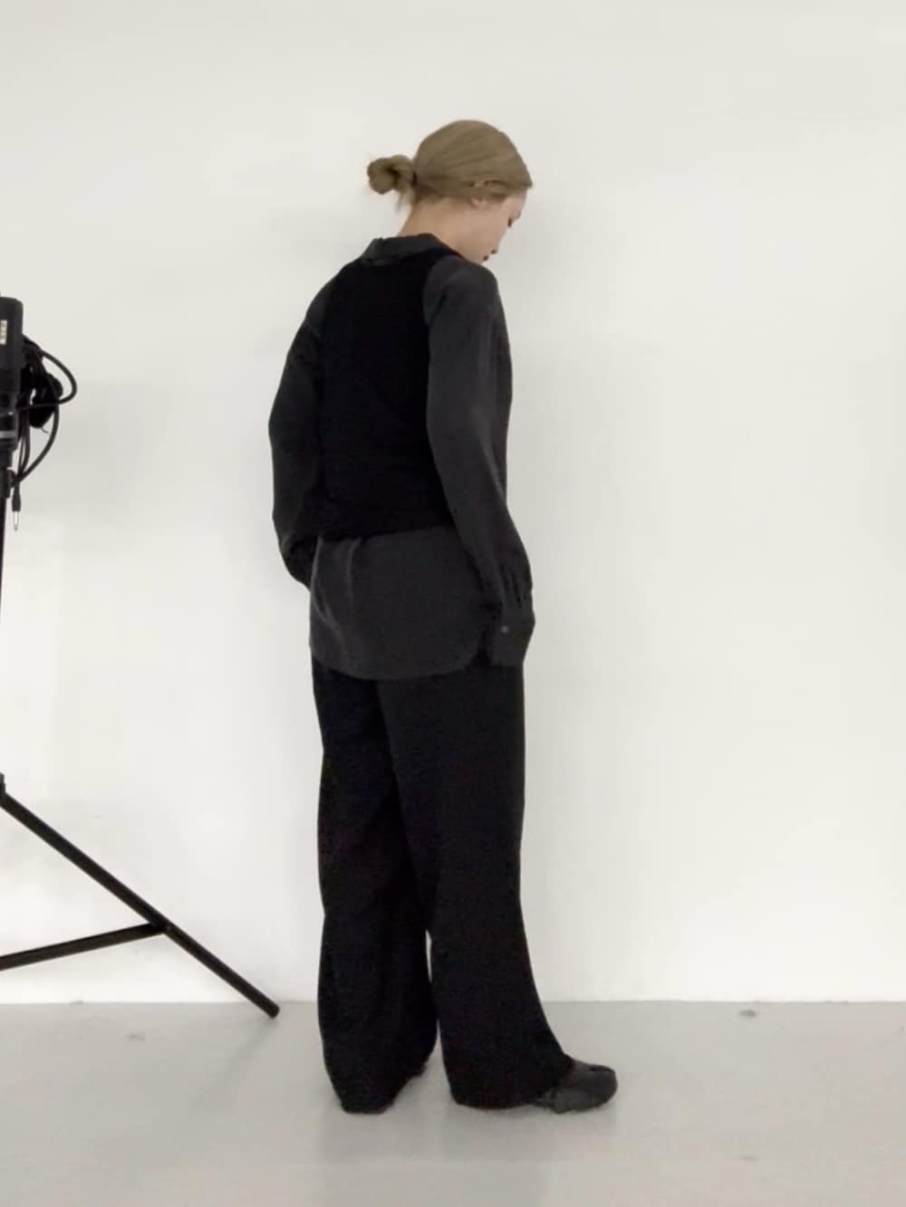 春らしいとろみのあるシャツに、タンクトップを重ねてハンサムなスタイリングを意識しました。