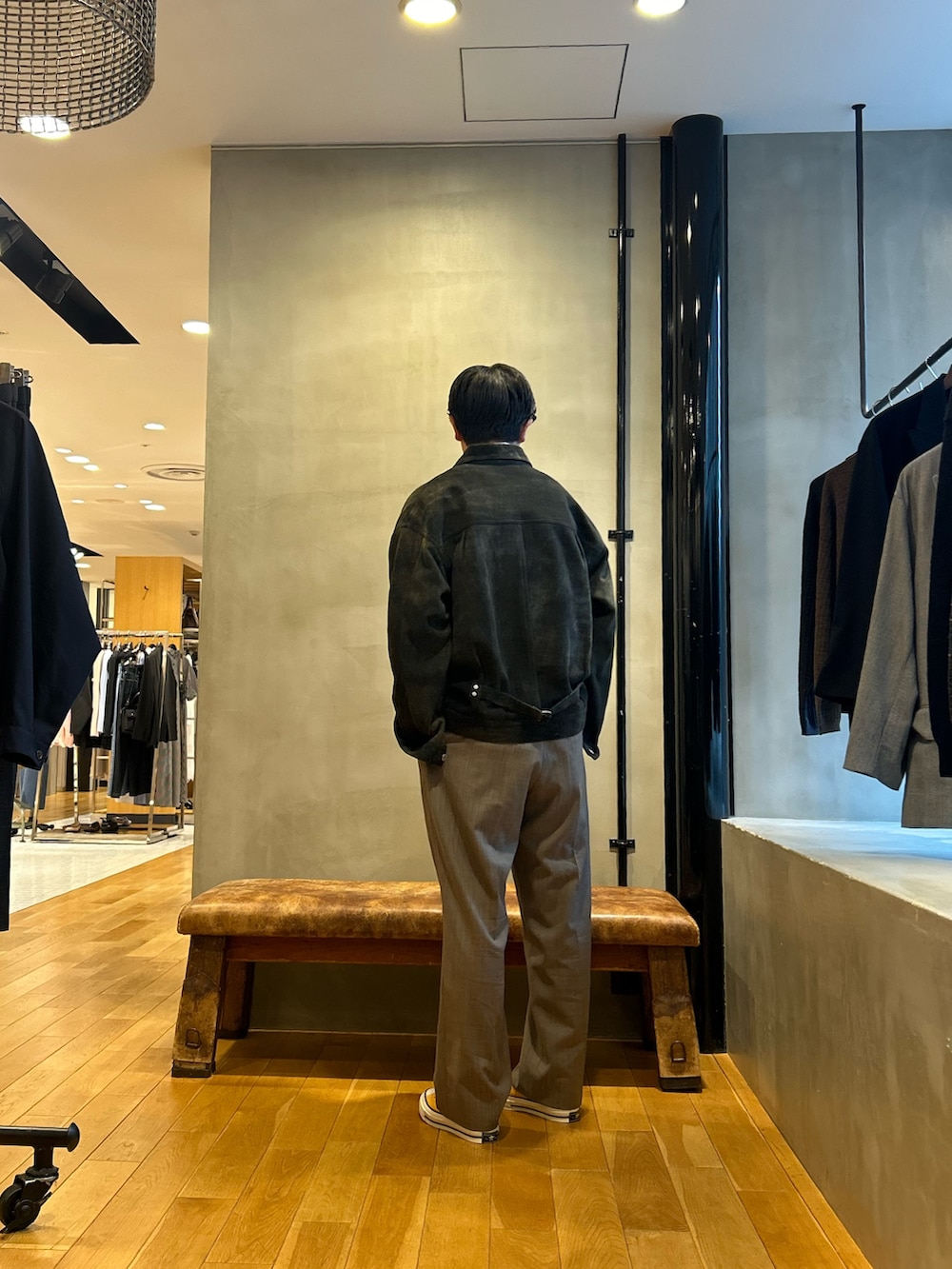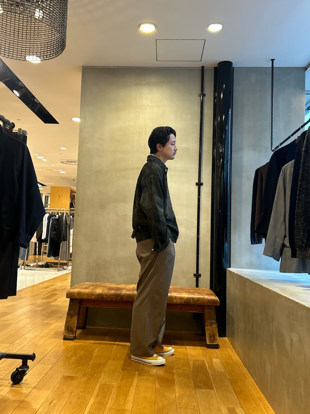 太さとストレートなシルエットがどんなスタイルにも合わせやすくスラックス一本目にもオススメです◎