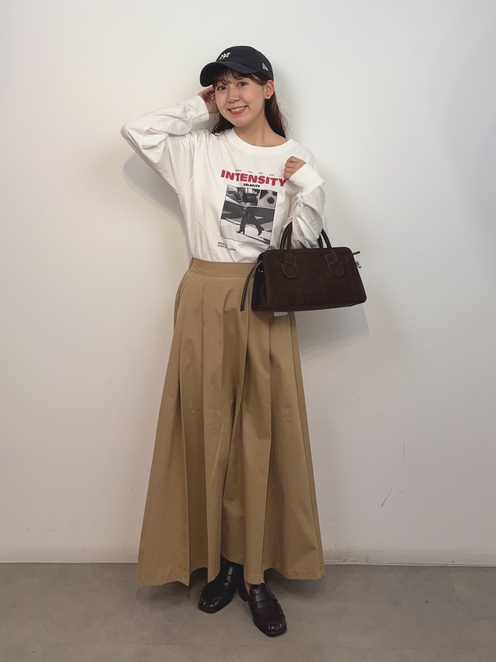 ベージュのスカートはロンTをさらに可愛く格上してくれます🥹✨オンオフ問わず使えるので、多系統好きにはたまりません🤤✨️