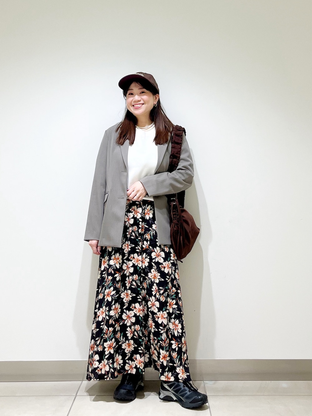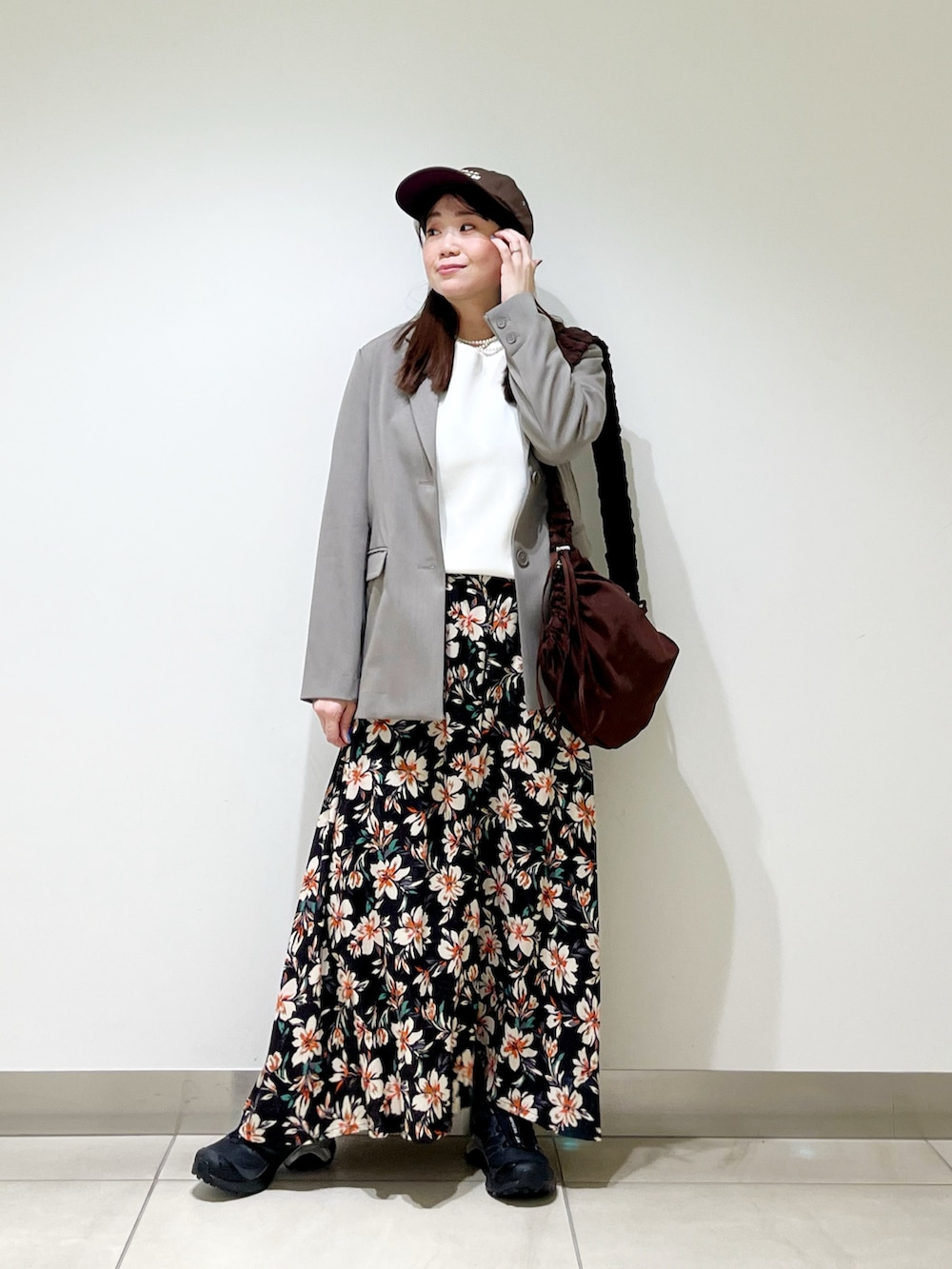 シンプルなスタイリングの時に大活躍するフラワープリントのスカートです☆ふんわりしていてとても着やすいです☆