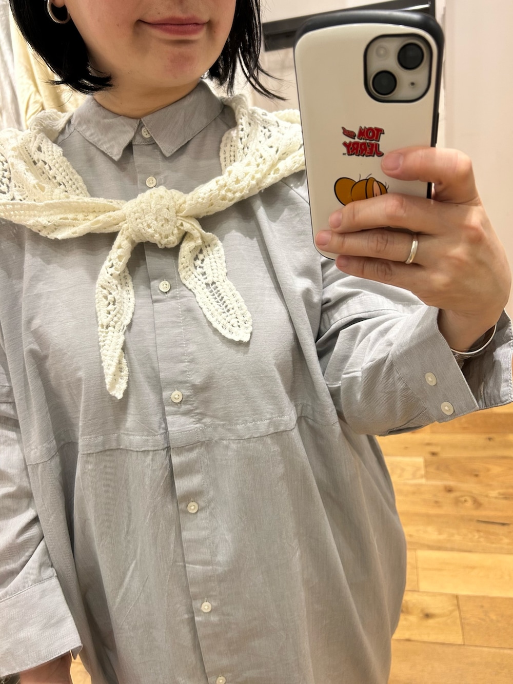 春らしくレーススカーフと合わせました。