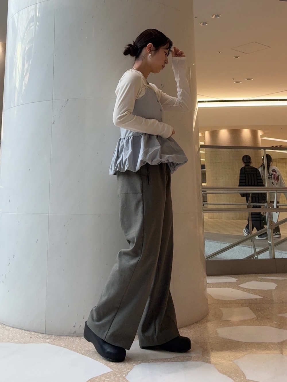 バルーンシルエットの甘めトップスは、スラックスと合わせると可愛くなりすぎずに着ていただけます🎈
