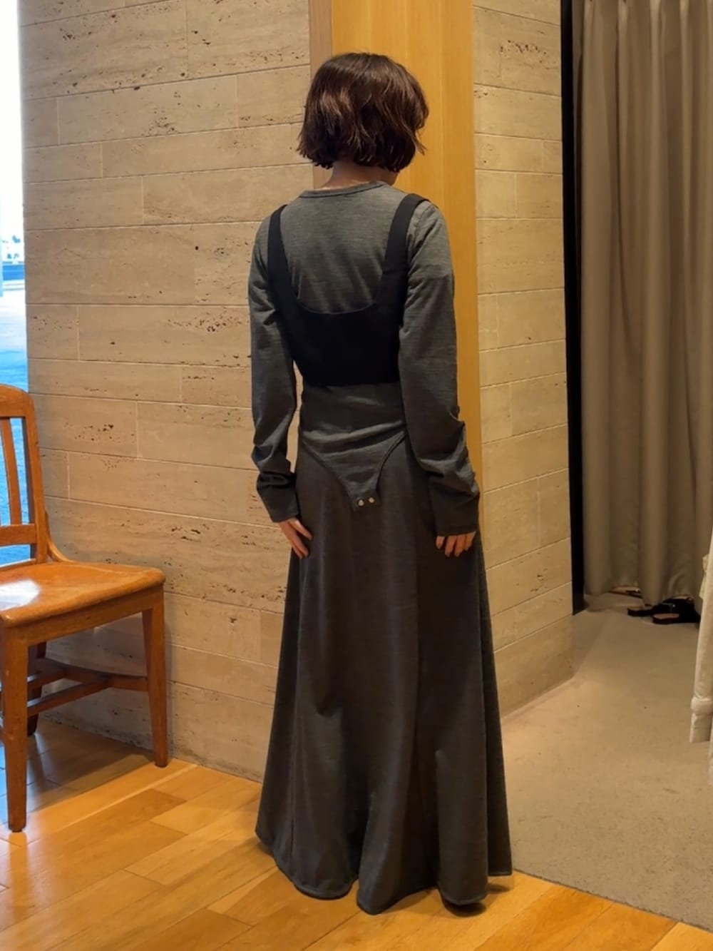 ワンピースは一見体のラインを拾いすぎるかな…と思ったのですが、不思議と体のラインを拾いすぎずストンと落ちる形になっているのでめちゃくちゃおすすめです‼️