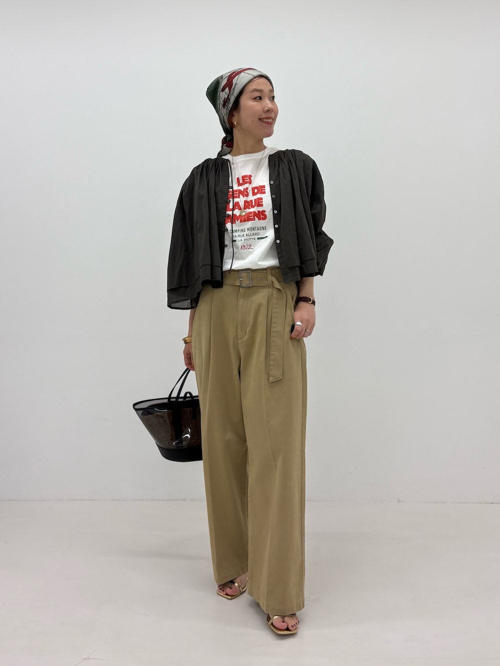 『3サイズ展開』ベルト付きタックワイドチノパンツ