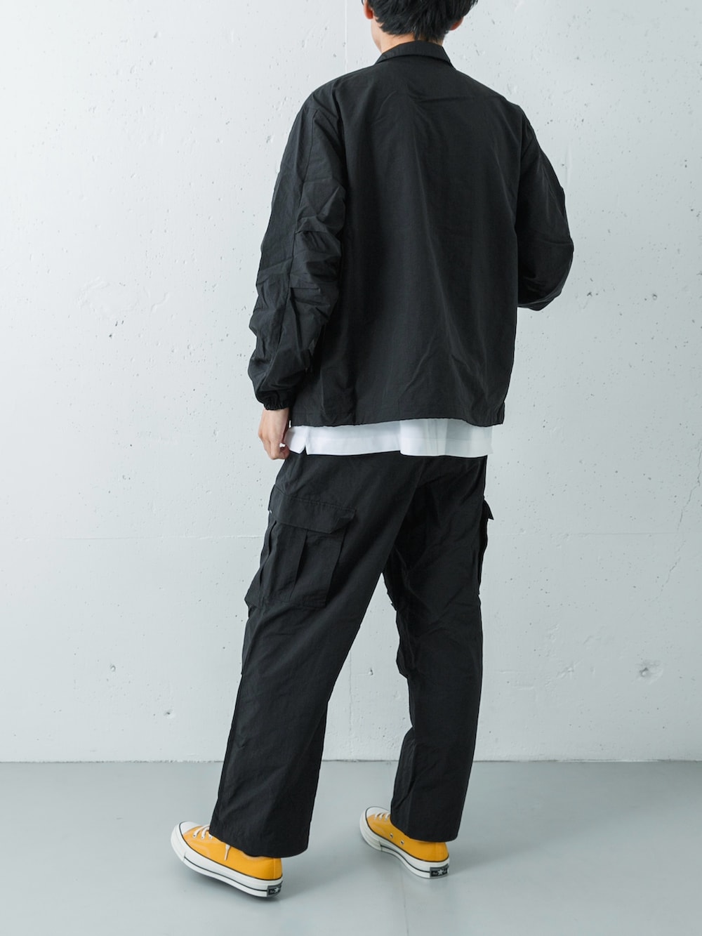 この重厚感のあるハードな着こなしに、あえて足元で強烈な「ハズシ」を効かせているのが最大のポイント。コンバースの「ゴールド」を差し色として投入することで、ミリタリー特有の重さや本気感が中和され、大人の余裕を感じさせる洗練されたストリートスタイルへと一気に昇華されます。