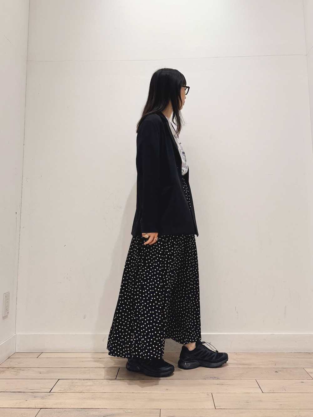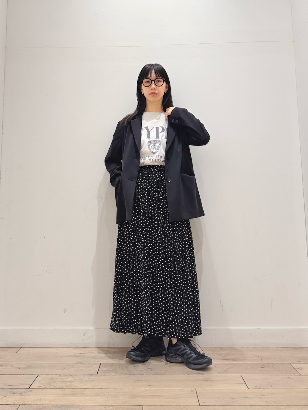 きれいめなドットスカートをカジュアルにまとめました☺️