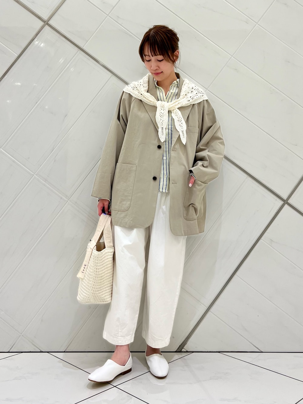 レーススカーフを合わせて一味違うスタイルを