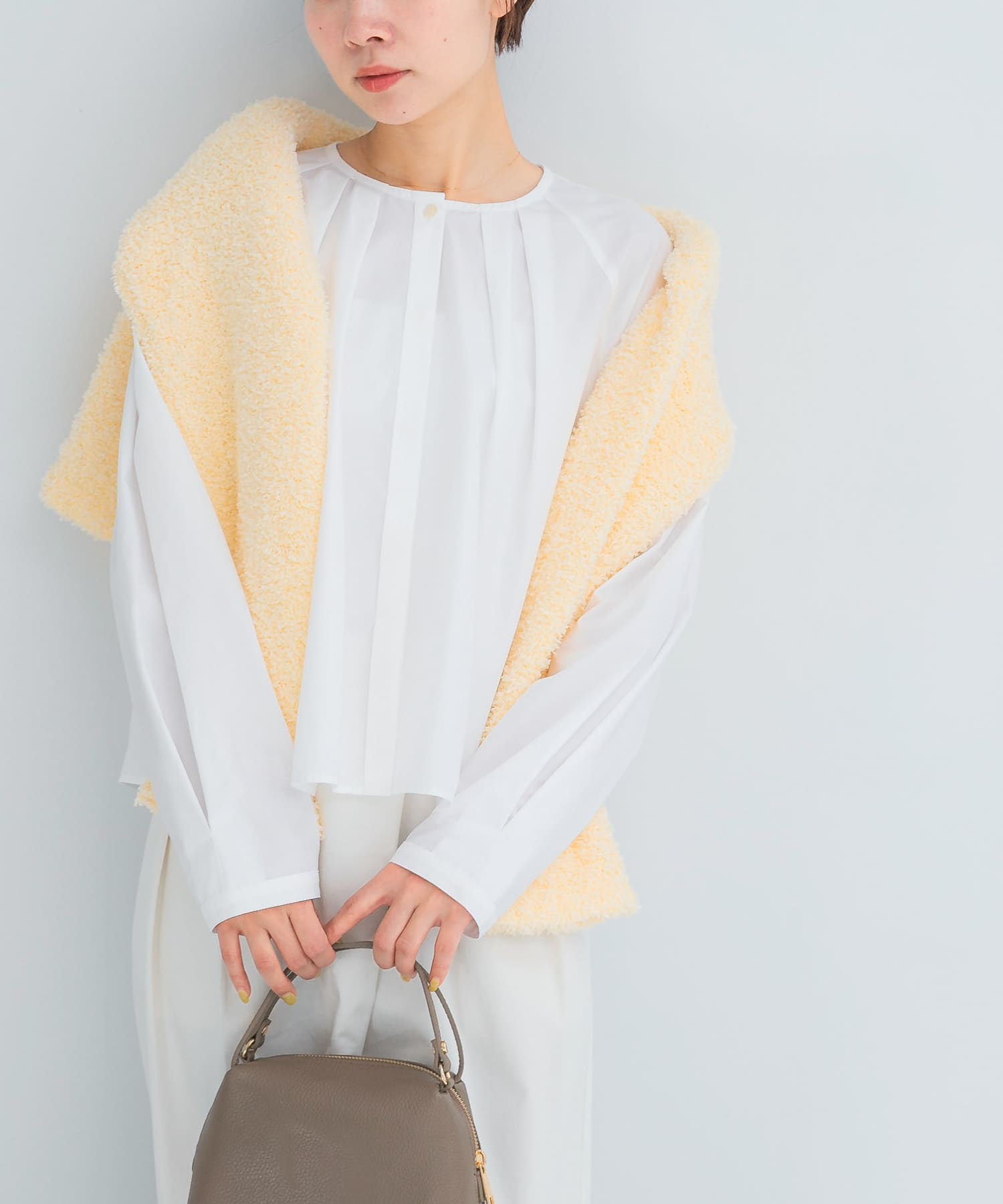 タックボリュームショートシャツブラウス