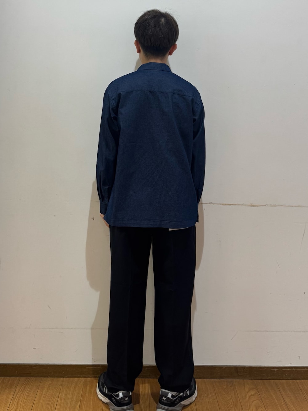 シャツは1枚で様になりやすい、デニムシャツです。シンプルにまとめていただくと、カッコよくきまりやすいです。前側のボタンがスナップ式なので、アウターとして使用も可能です!
