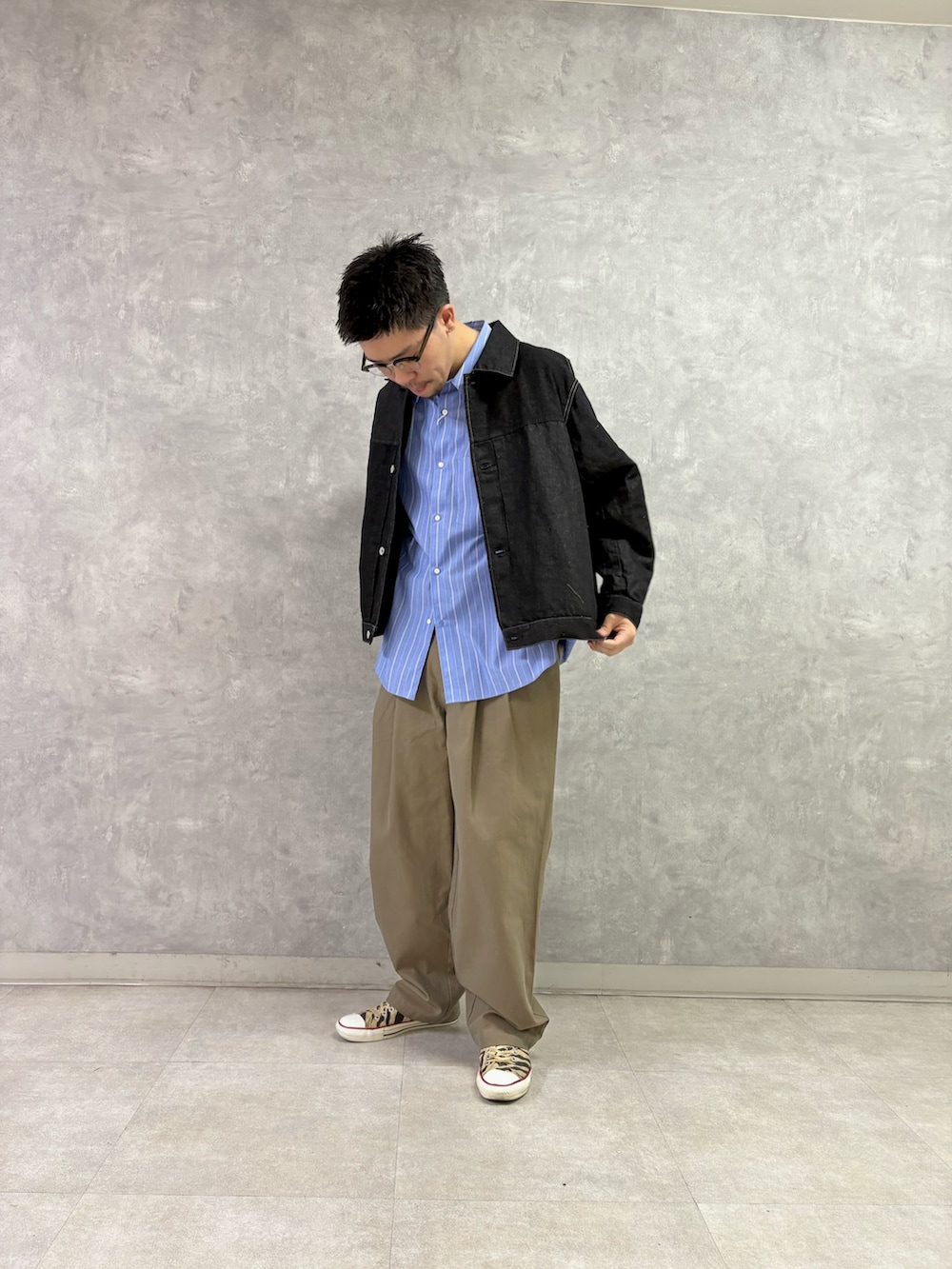 カッチリジャカットヤカーデイガンでもいいですが、今期はデニムなんかに合わせたい気分です。