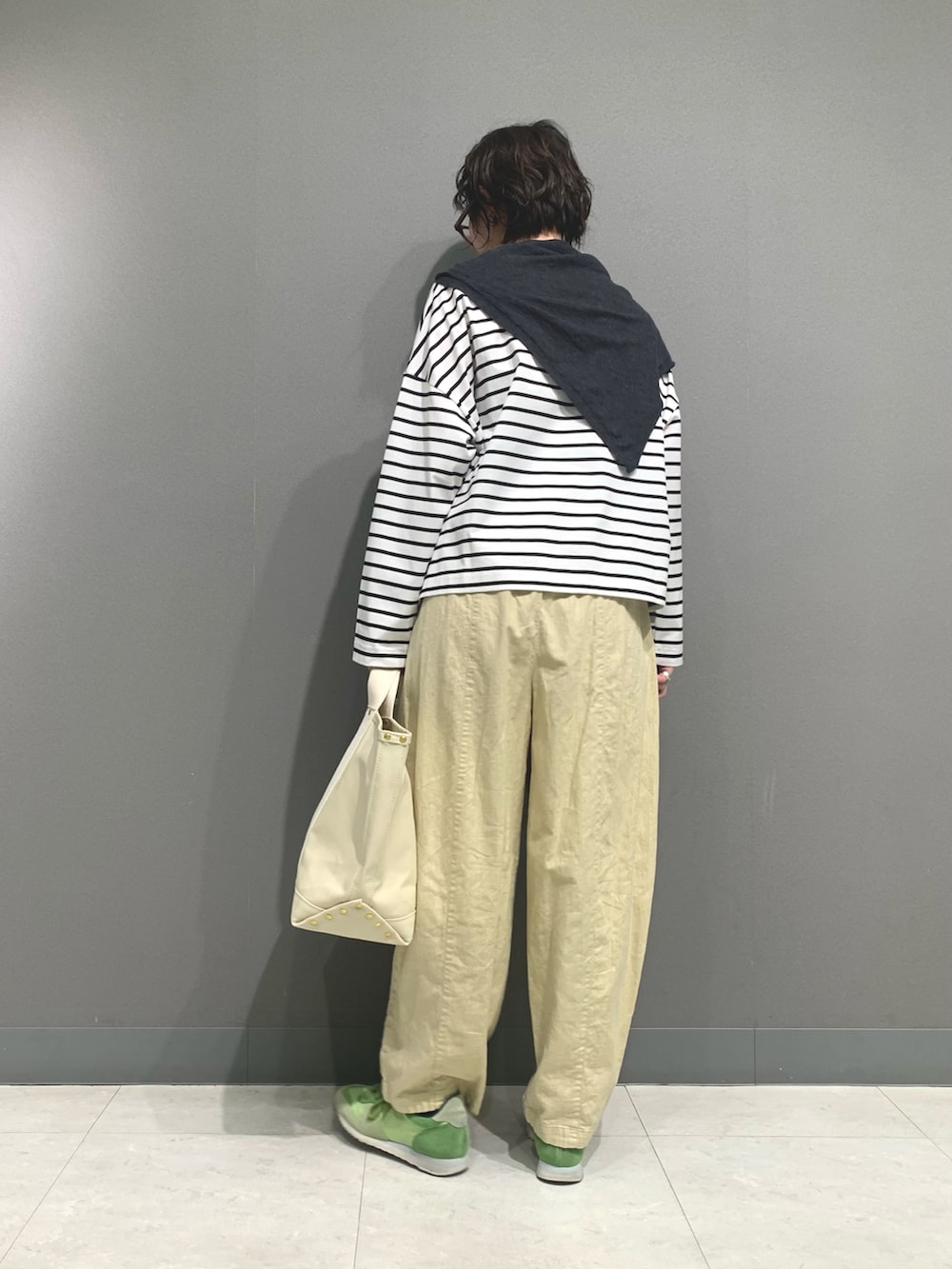定番のボリュームパンツのコットンリネン素材バージョンです。お尻周りに膨らみがありかわいらしいシルエットになっています。イエローがかった色味も春らしくてかわいいです。