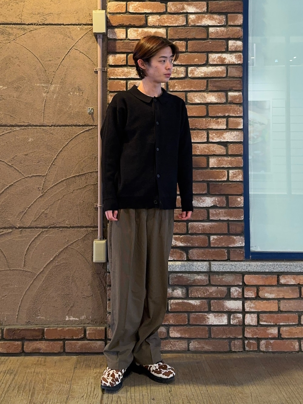 今回のコーディネートはポロカーディガンにチェックのトラウザーを合わせたコーデです!!