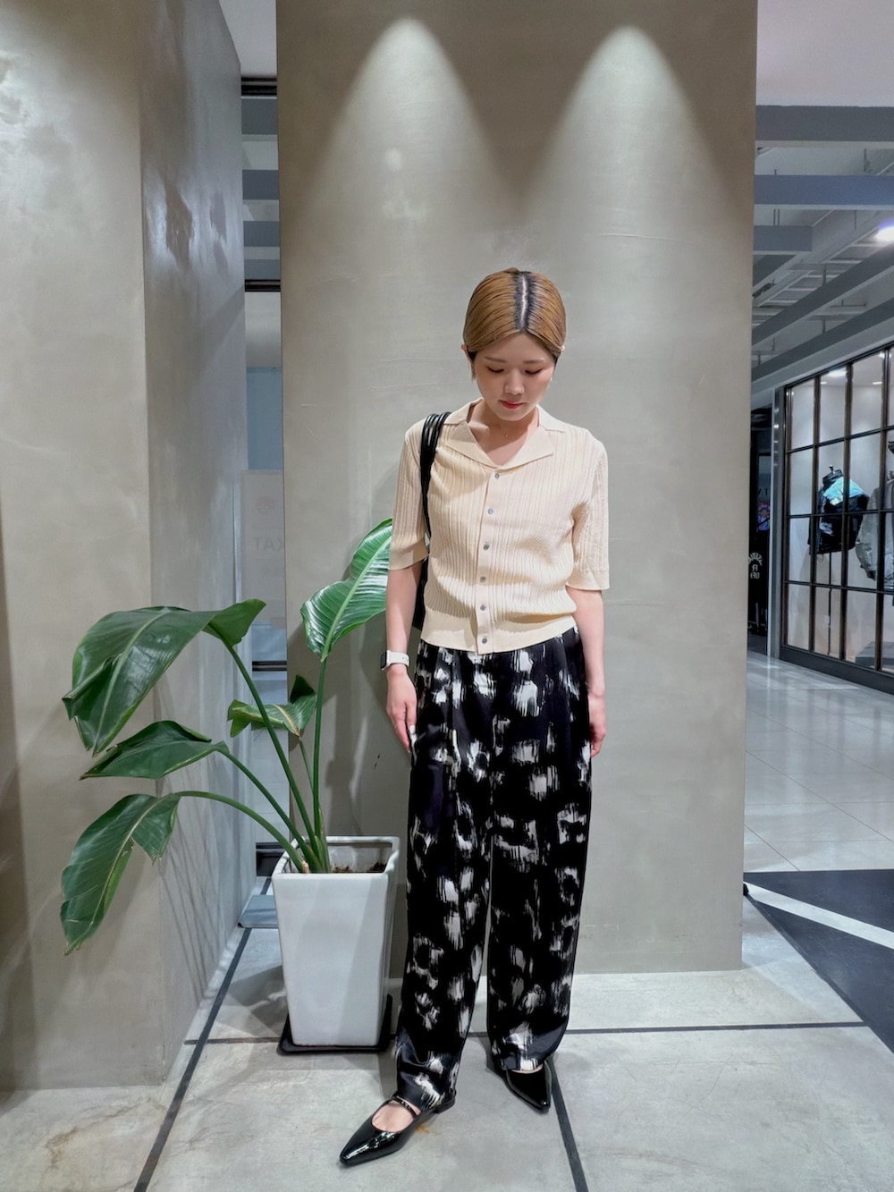 オリジナルのフラワー柄と、光沢感がオシャレなパンツです✨