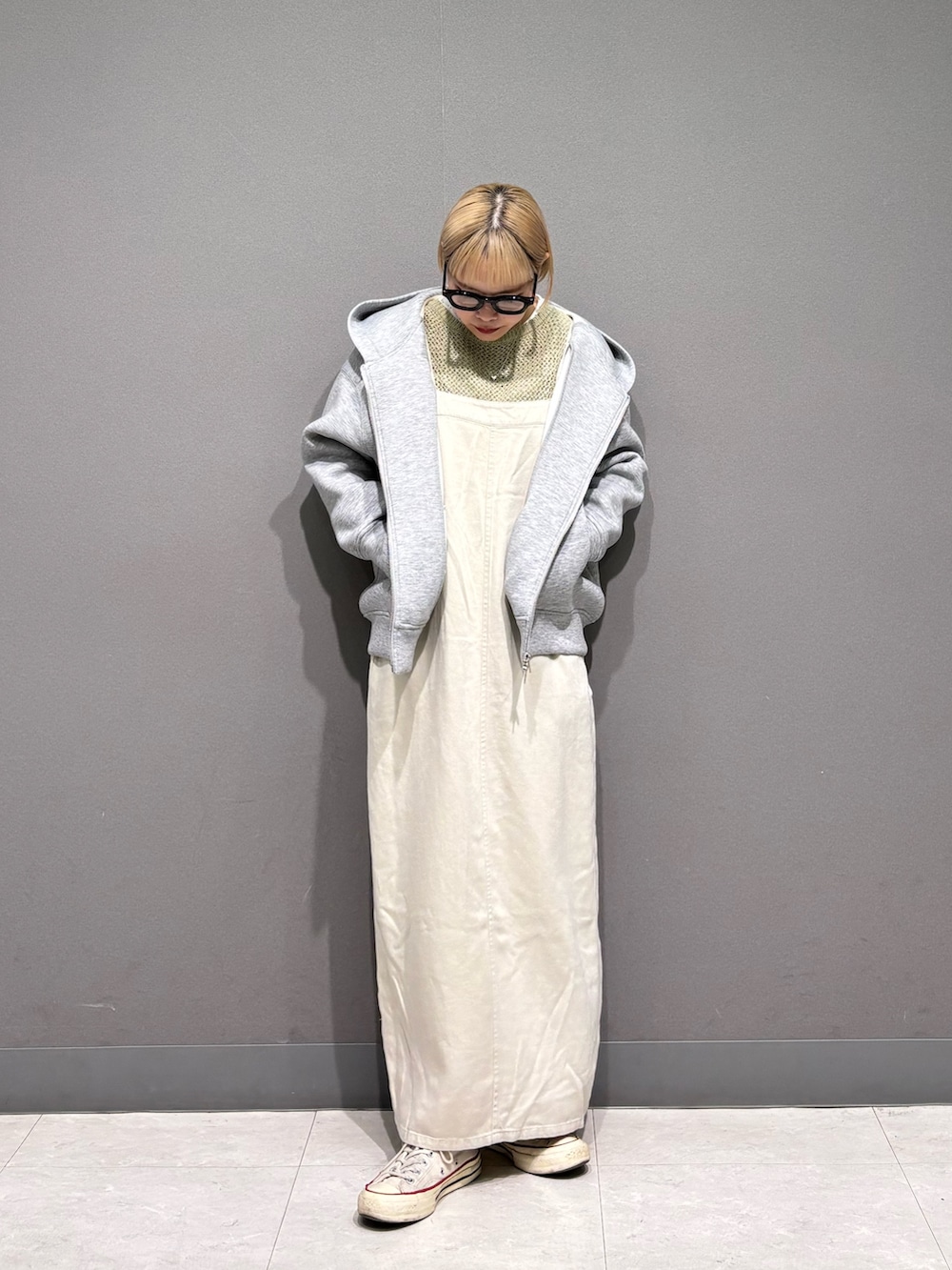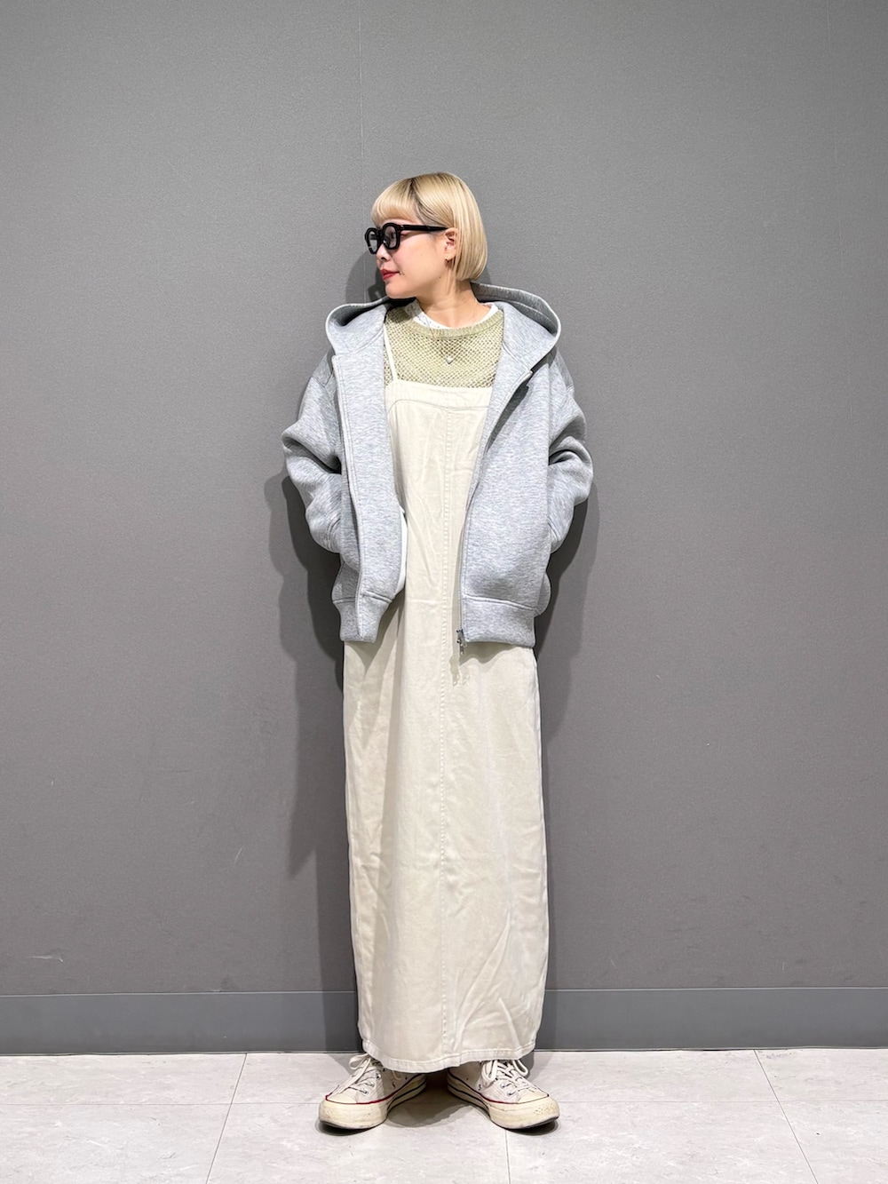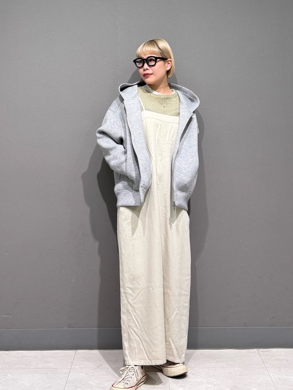 春ニットにキャミワンピを合わせて