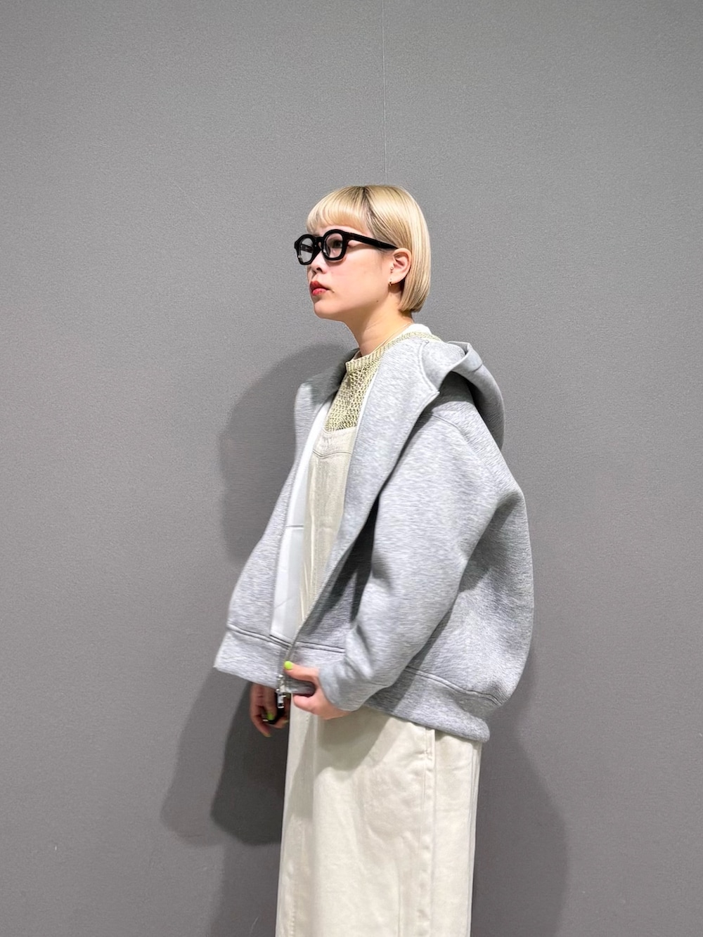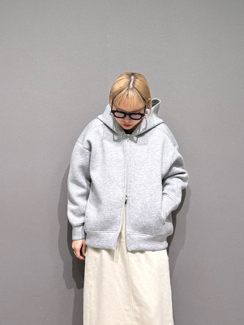 外出の時にはパーカーを羽織るだけ。