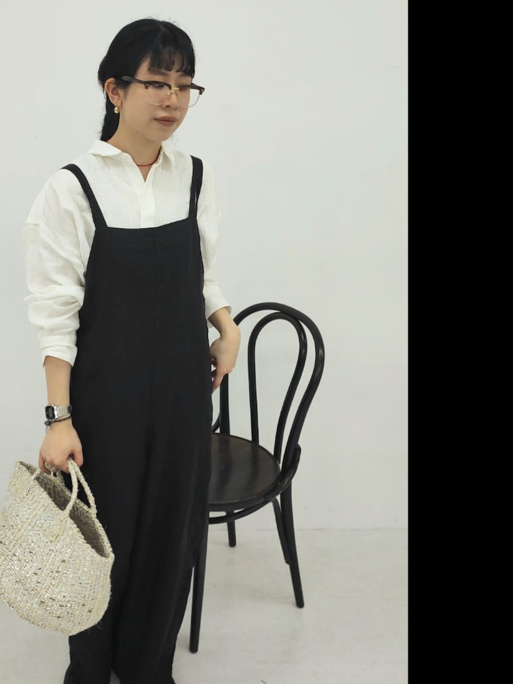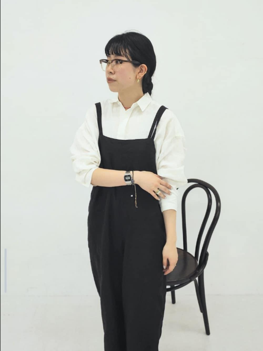 女性らしいこなれたデザインのサロペットは、カジュアルになりすぎない雰囲気が◎