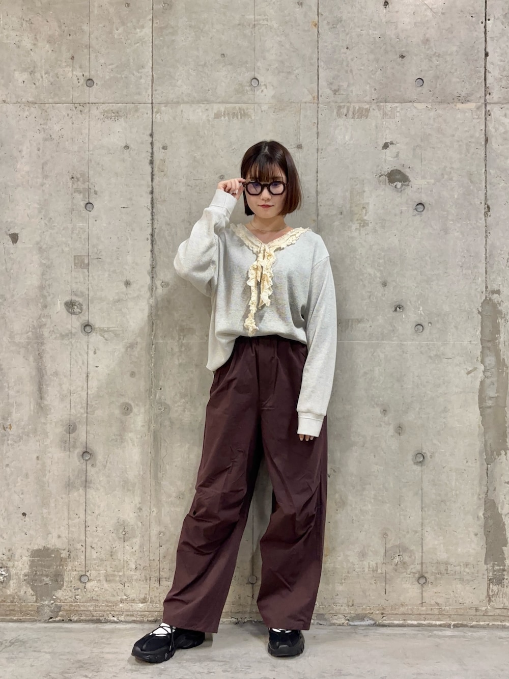 メガネが特徴的なコーデに、KBFの緩やかさのある個性的なアイテムを合わせてみました!