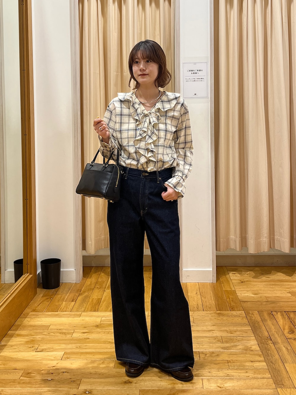 チェックフリルブラウス