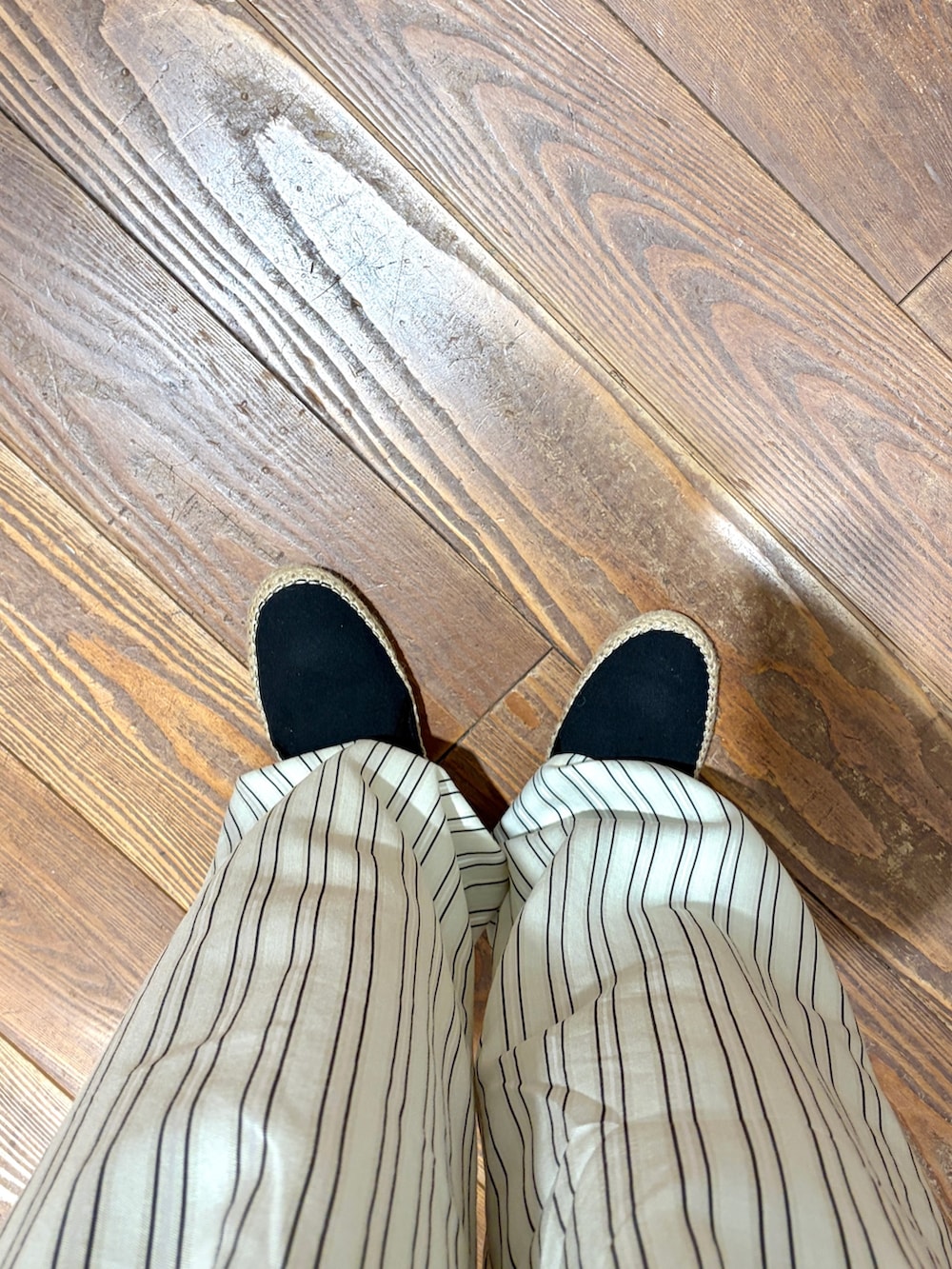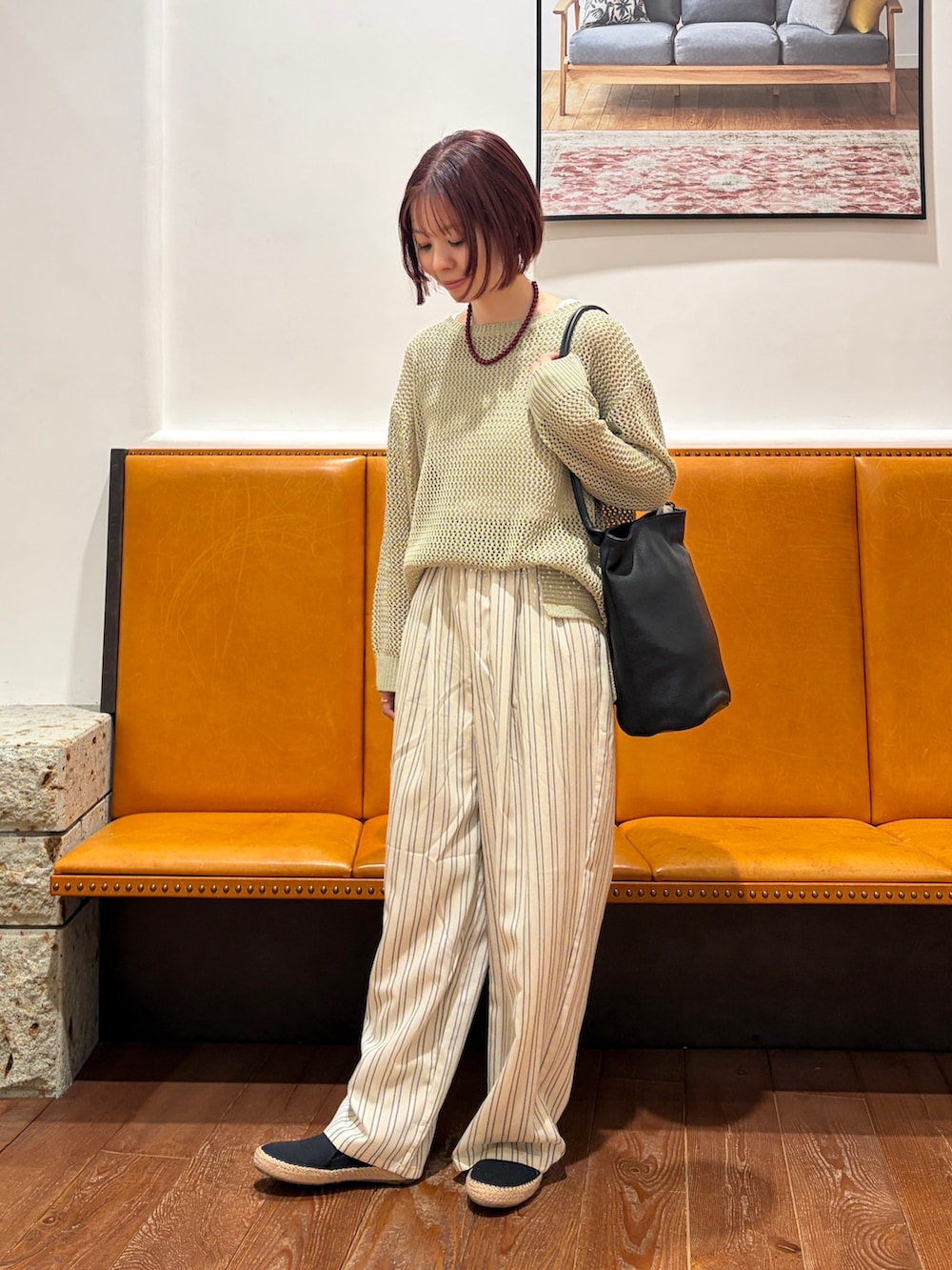 パンツはストライプがコーデのアクセントになり、シンプルなトップスと合わせても様になります!