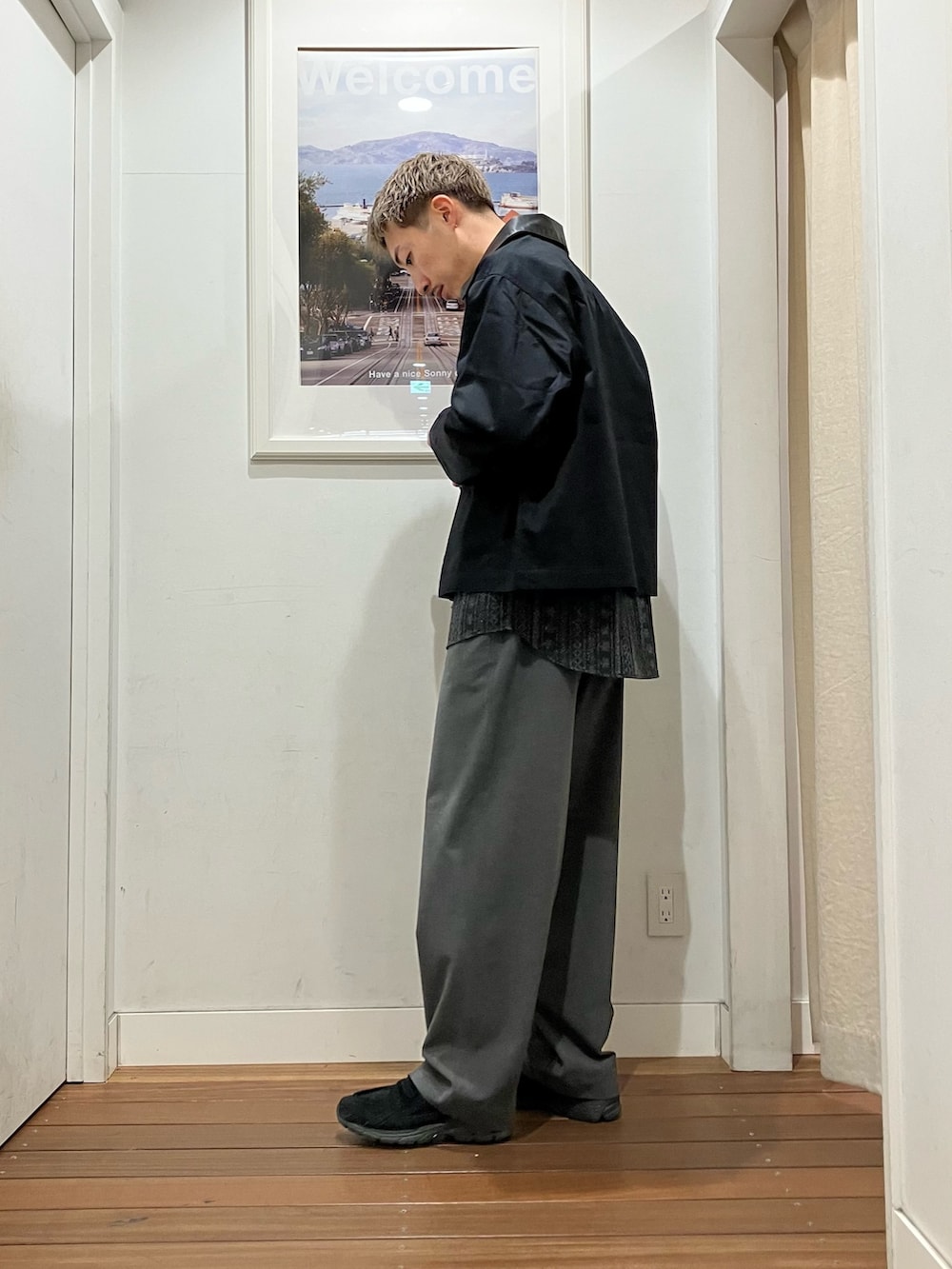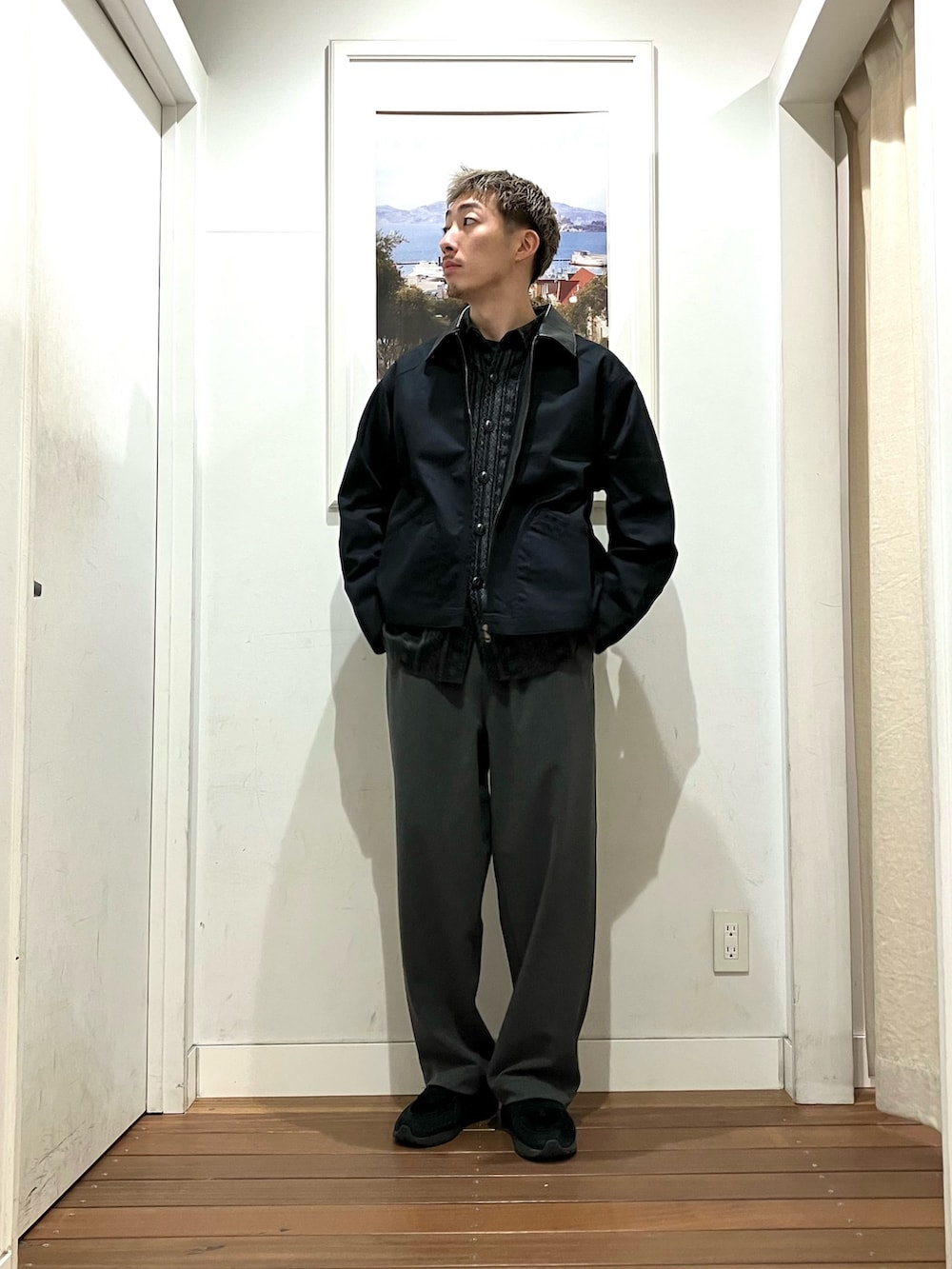 ボディーはコットン、襟がレザーになっており、サラッと羽織るライトアウターにしては贅沢なジャケット🧥