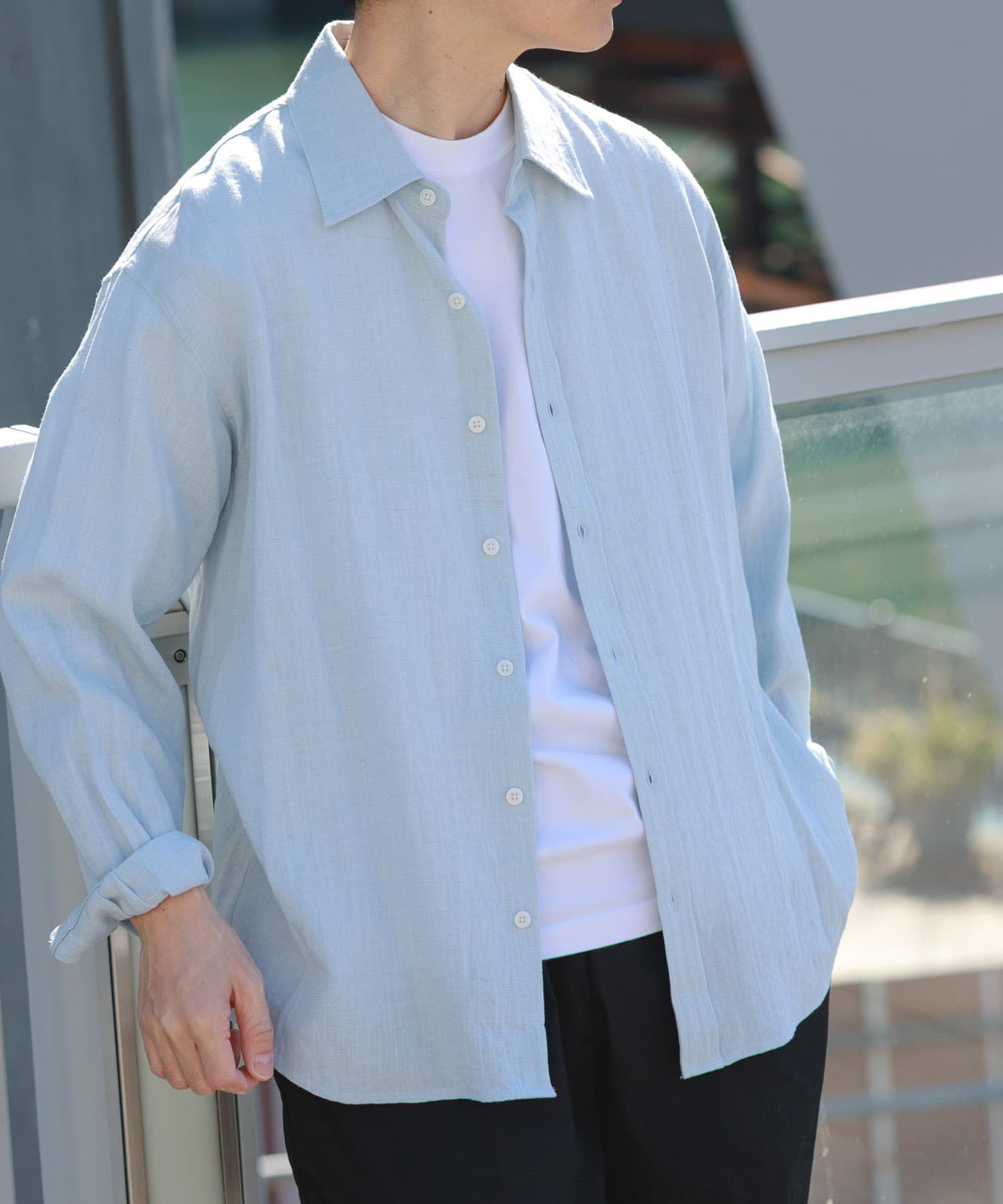 リネンブレンドレギュラーカラーシャツ