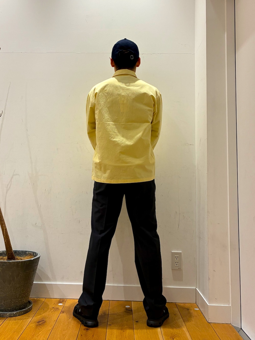 中にはボーダーのニットを着ています!その上にダントンの薄手のジャケットを羽織りました!パンツはテーパードが効いているスラックスになっています!