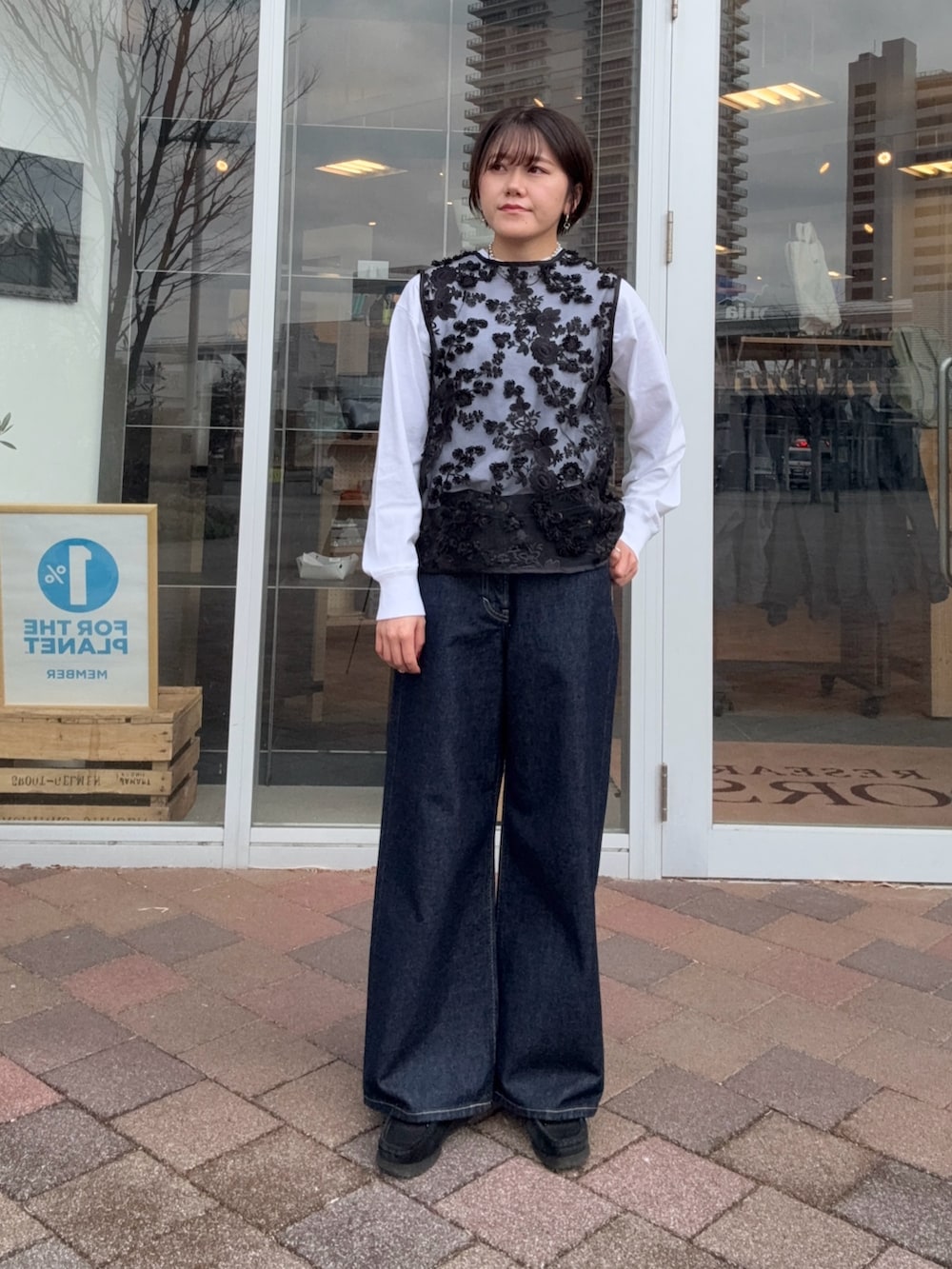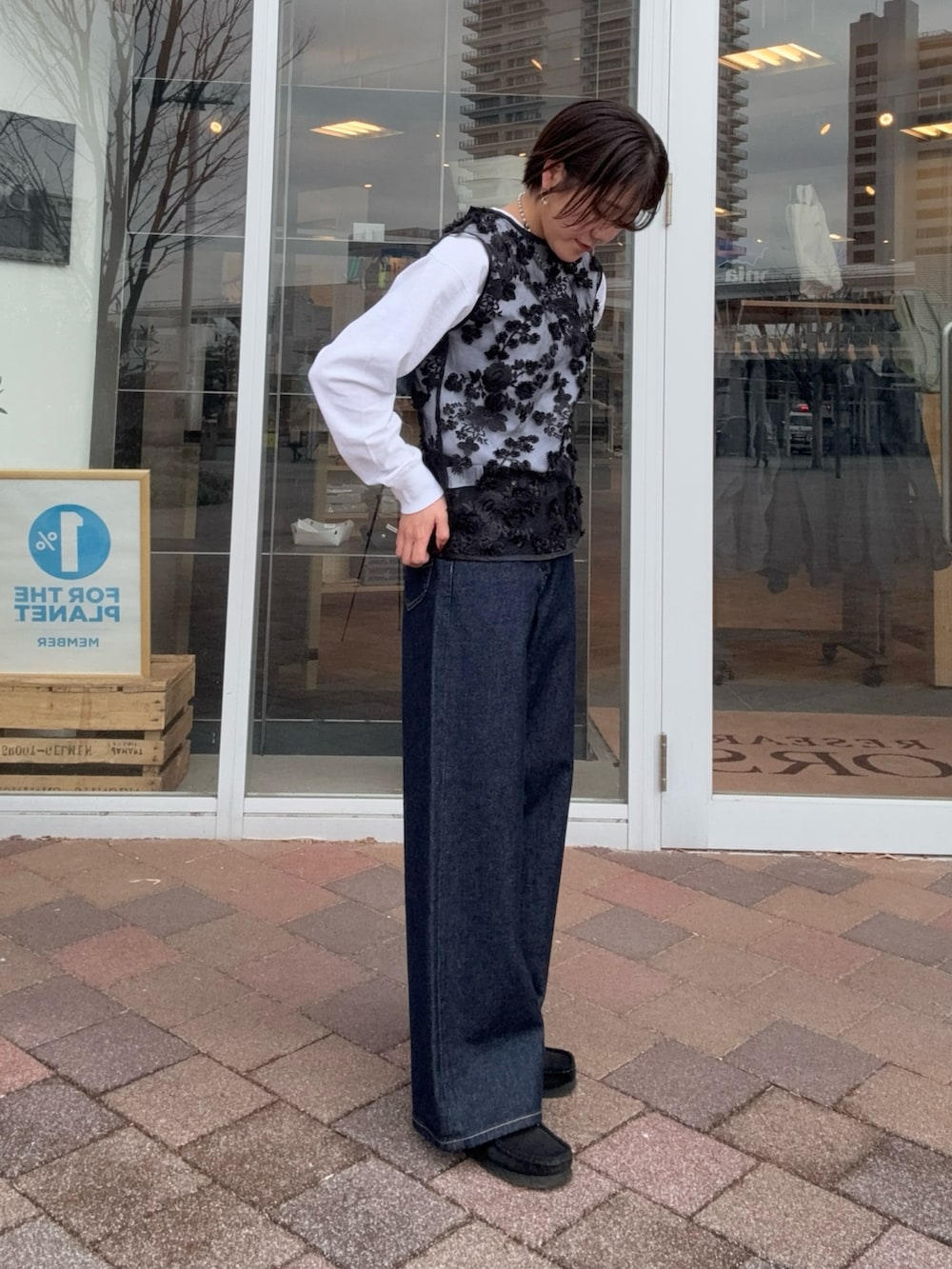 カットソーなどとレイヤードすることで一枚で存在感のあるコーデになります◎