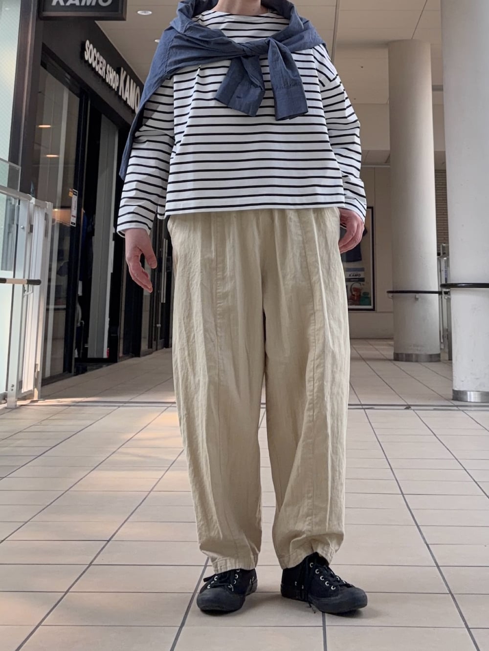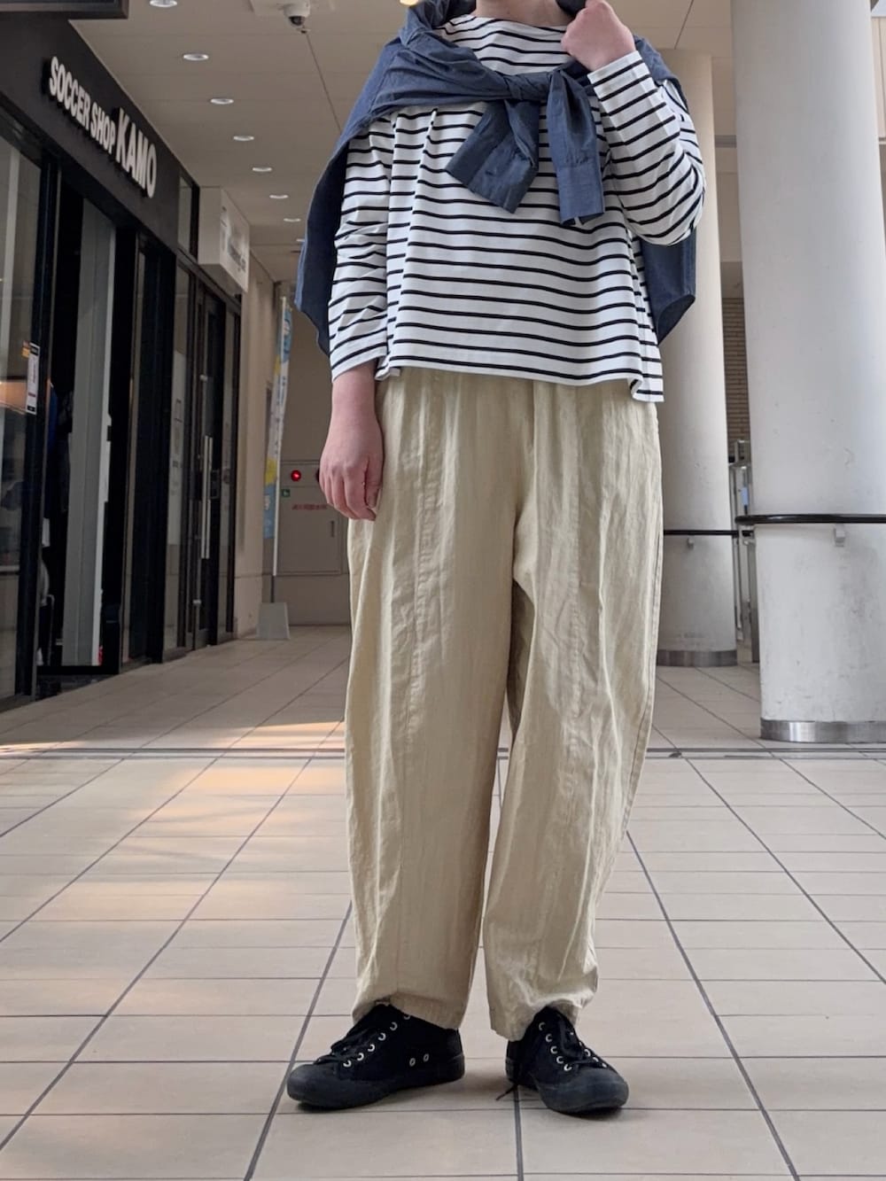 バランスが取りやすく、様々なコーディネートをお楽しみいただけます。今回はボーダーと合わせて大人カジュアルに。