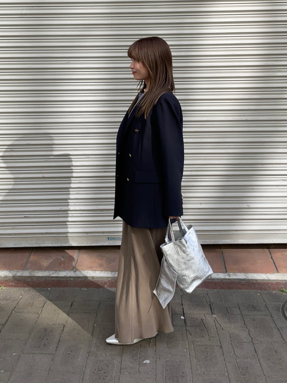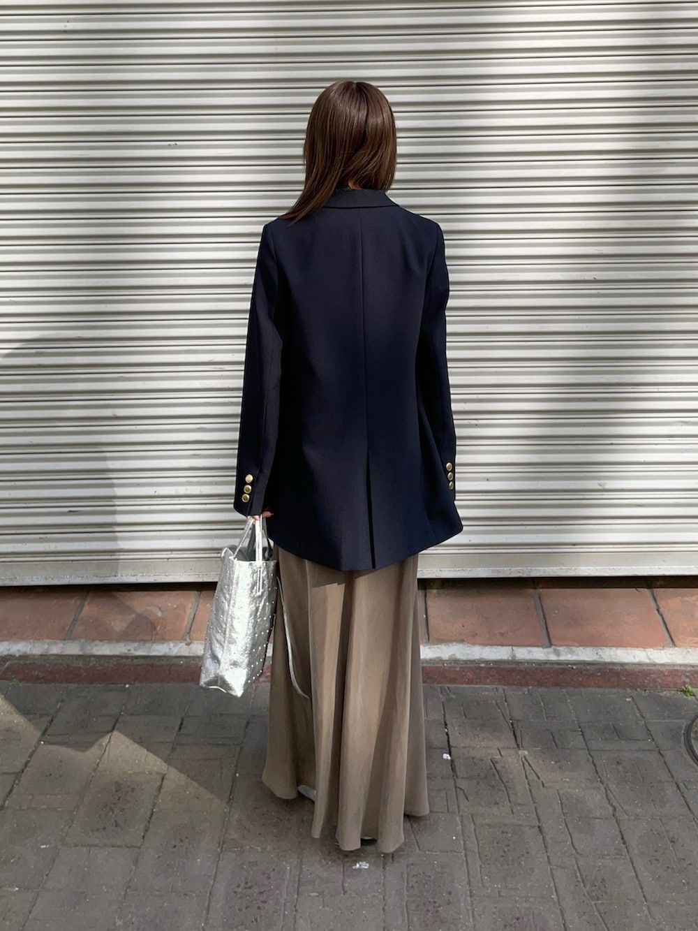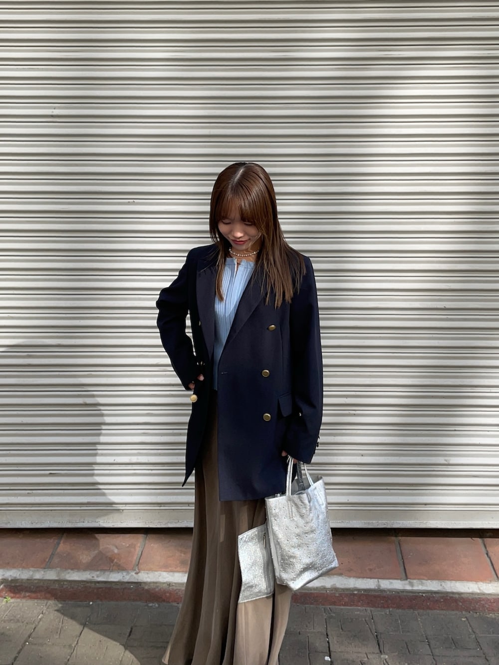 ジャケットはダブルブレストブレザージャケットです!毎年大人気のジャケットで今年も軽やかな羽織心地と、シワがつきにくい素材もオススメポイントです!キレイめはもちろん、カジュアルにデニムや普段着にも取り入れやすいですよ✨