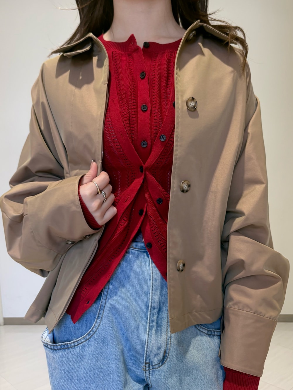 袖周りボタンをきつくするとコクーンシルエットのお袖になりインナーに合わせて自由自在です!!