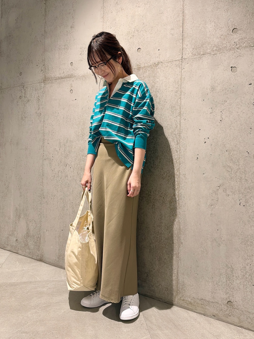 今回は、スッキリとしたシルエットが女性らしい、ロングスカートと合わせてみました。