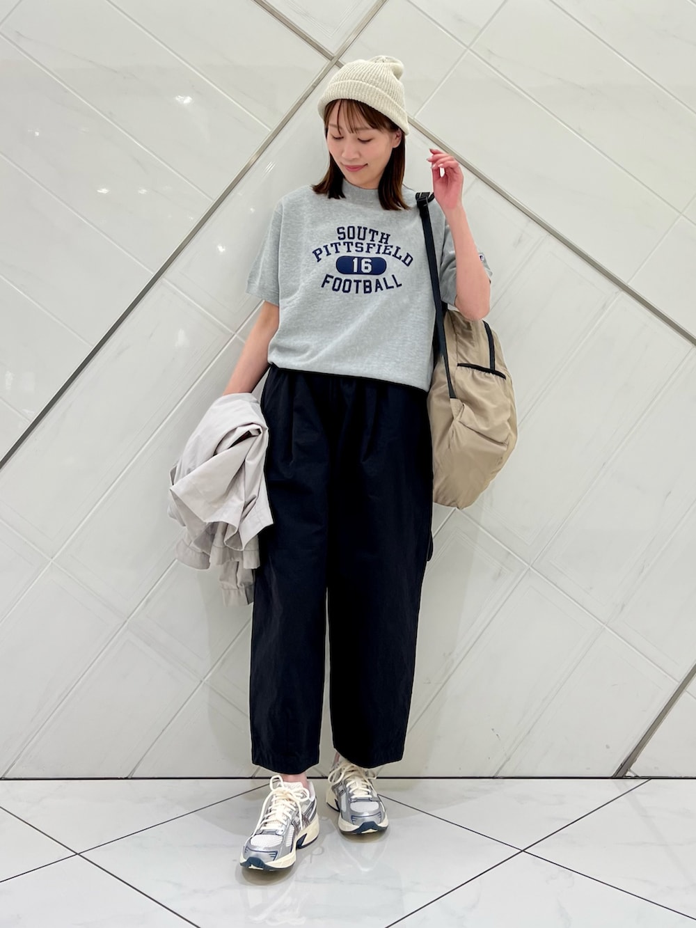 で動きやすく程よいカーブシルエットがこなれ感ある
