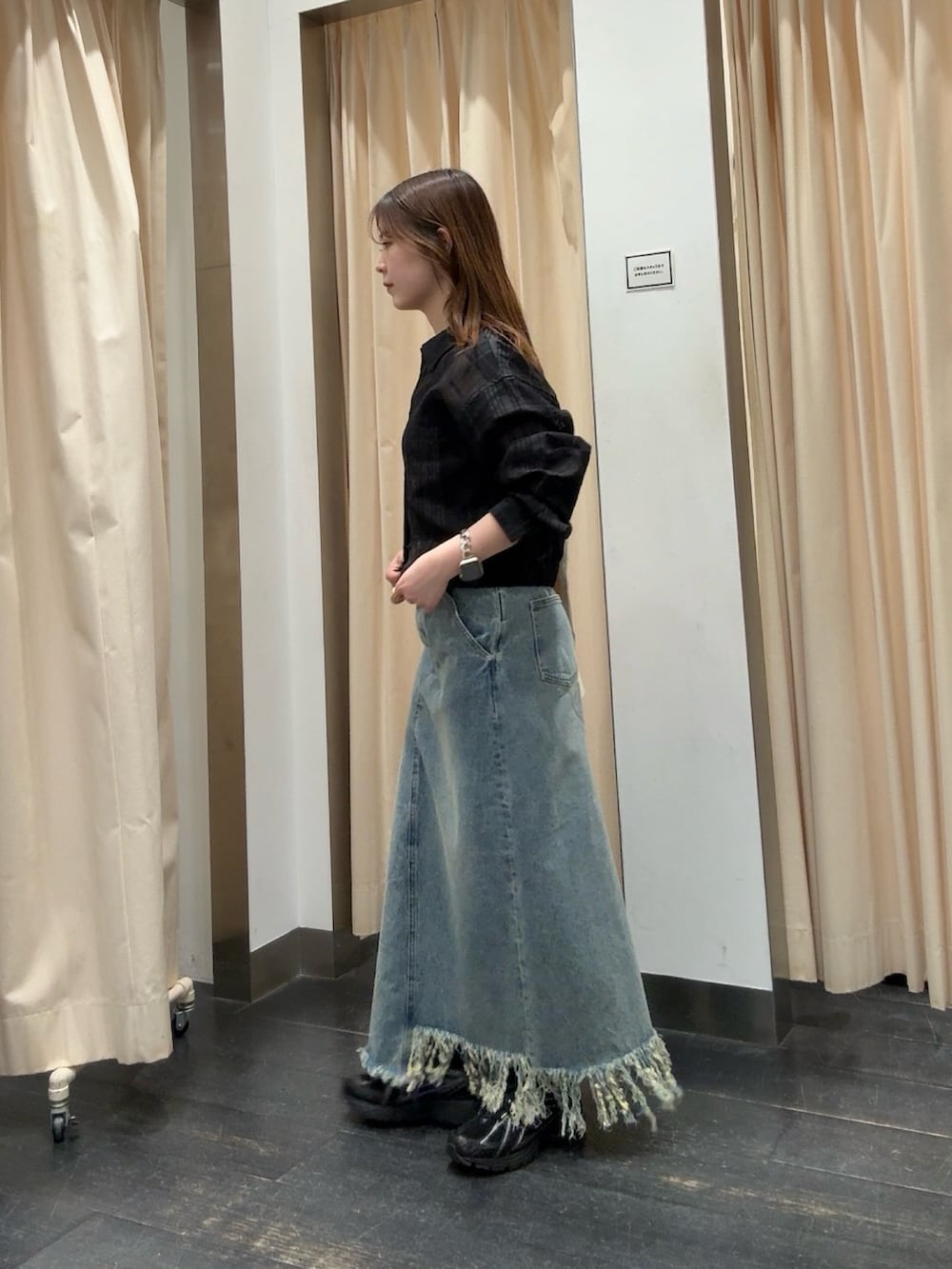 アシメフリンジデニムスカート