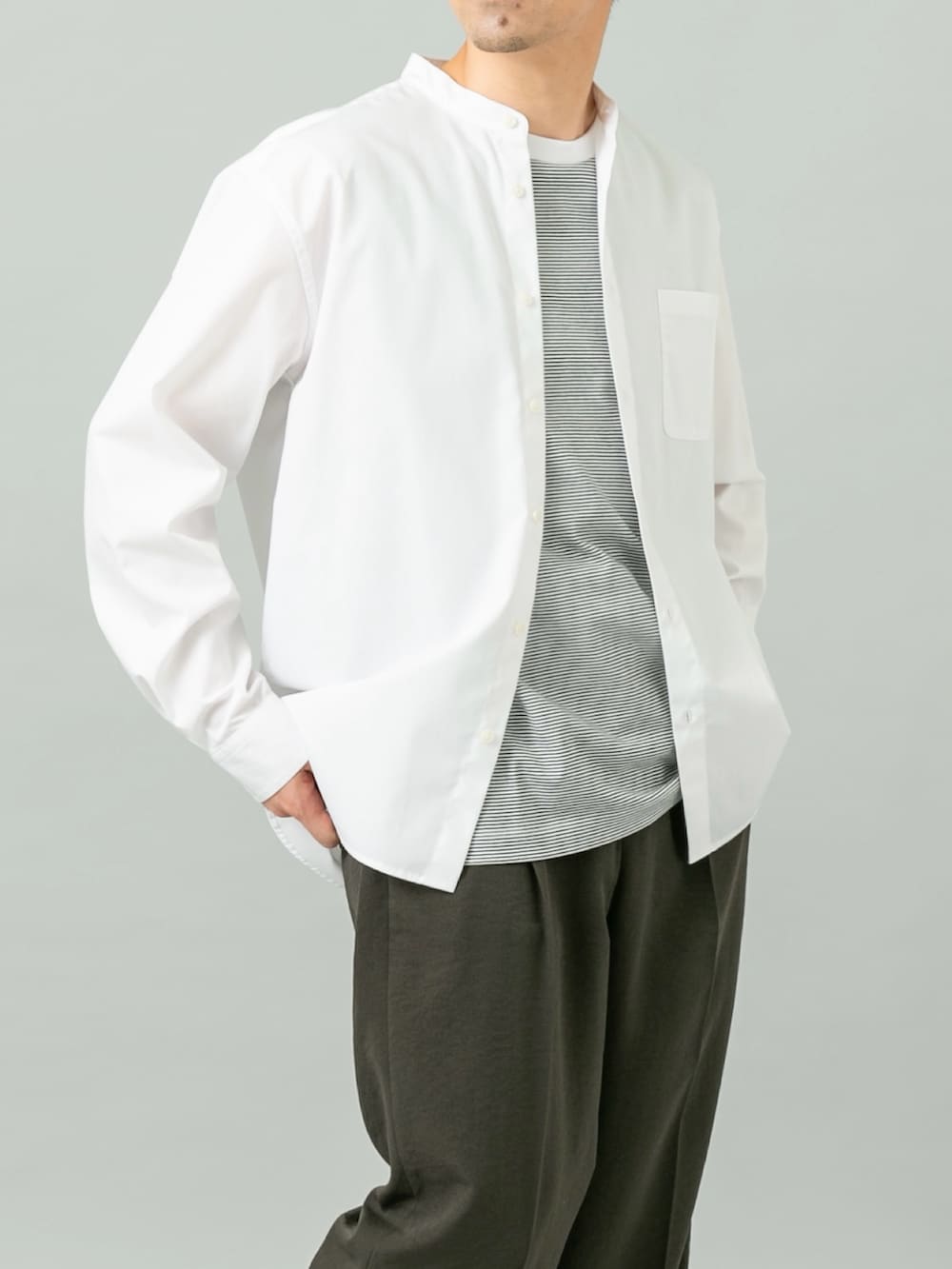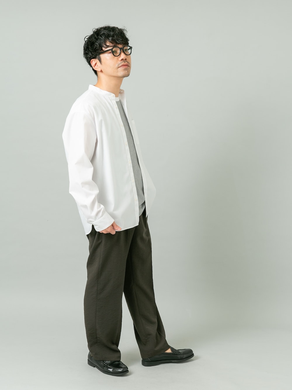 シャツはLサイズでややゆったりめなサイズ感で着用しました。