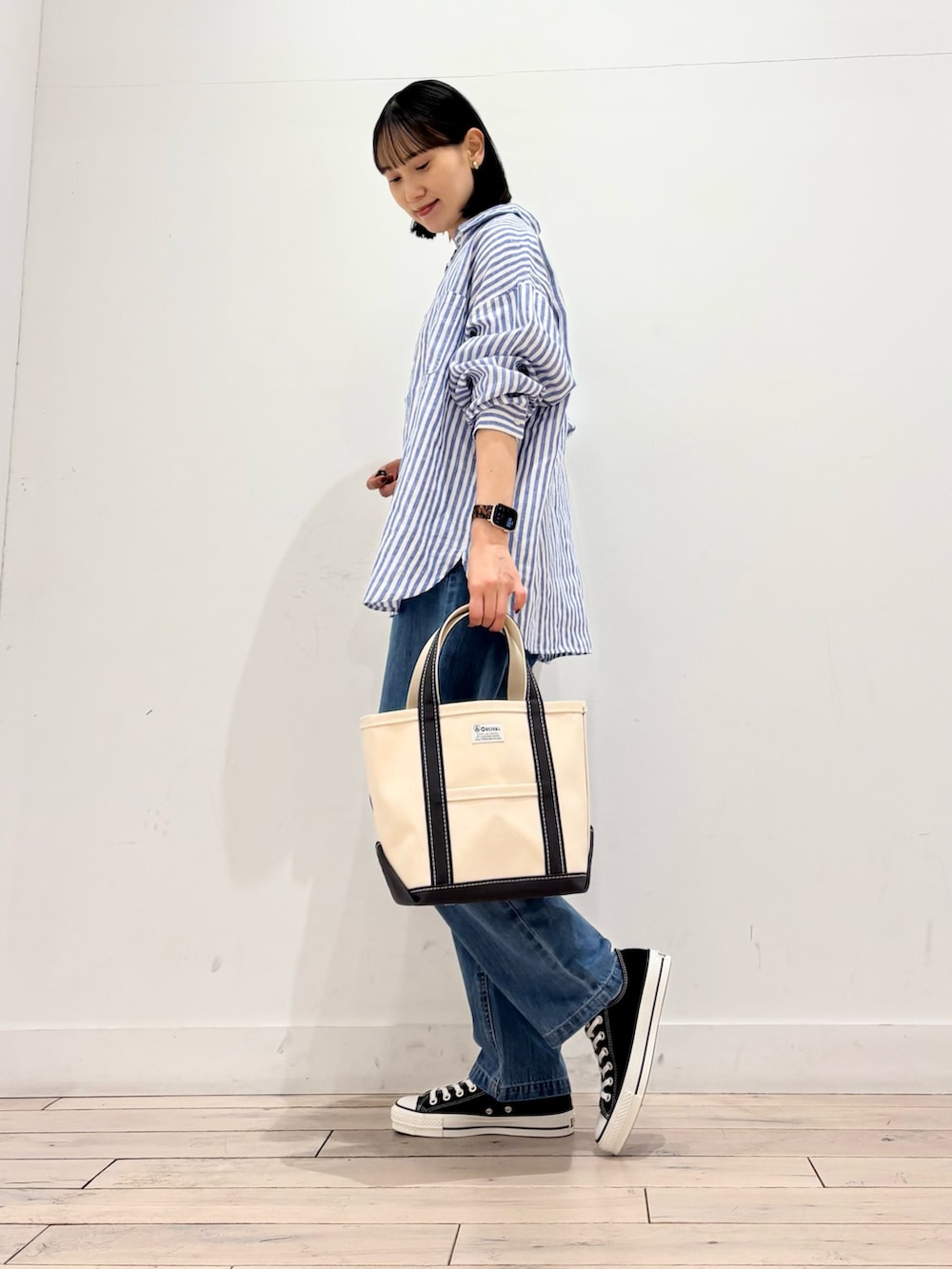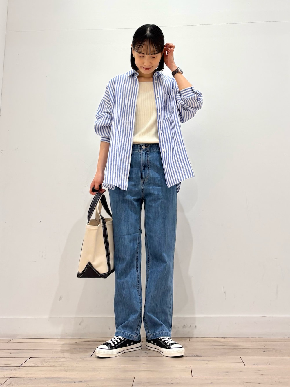 デニムと合わせて爽やかな印象に👏