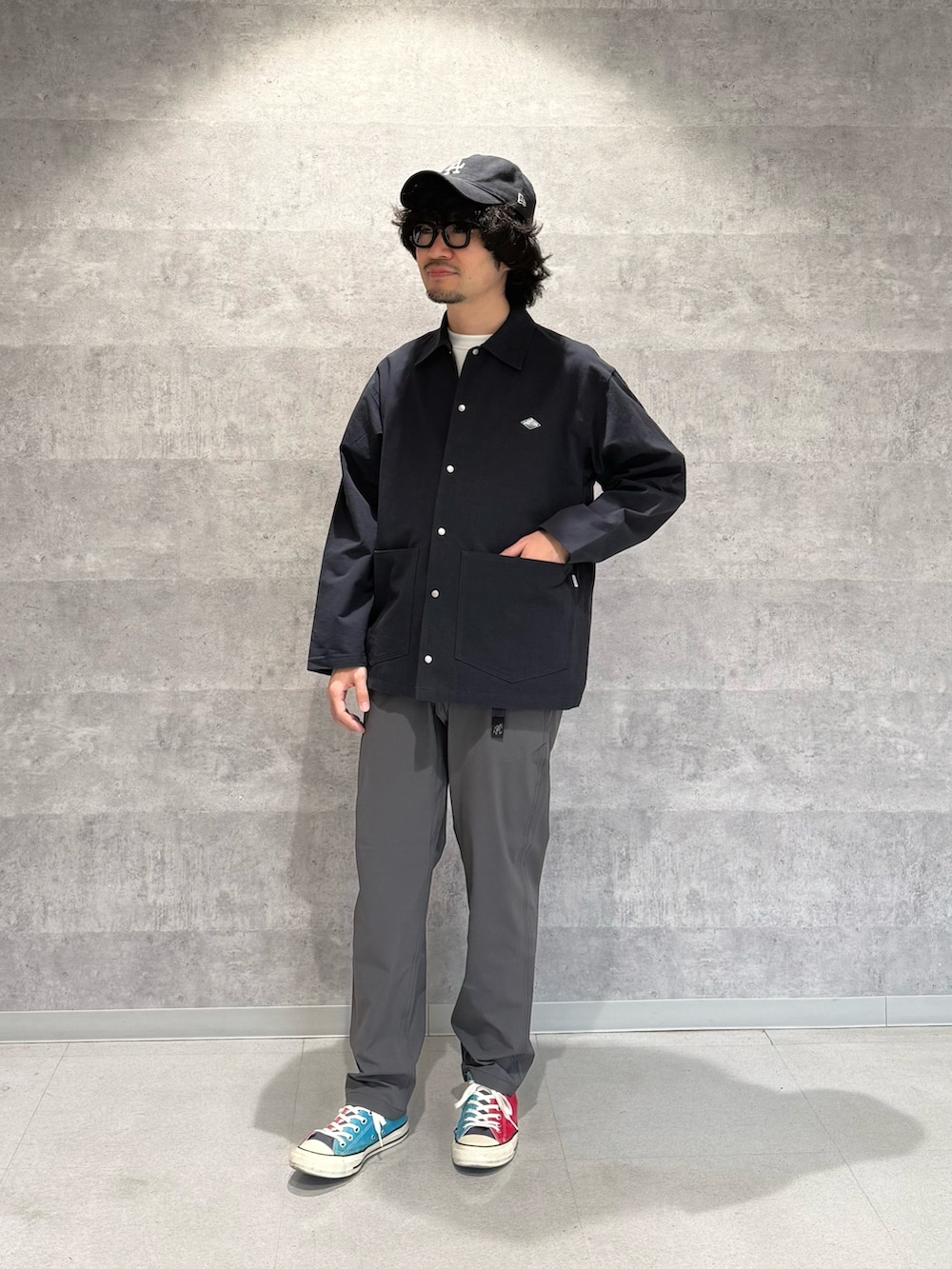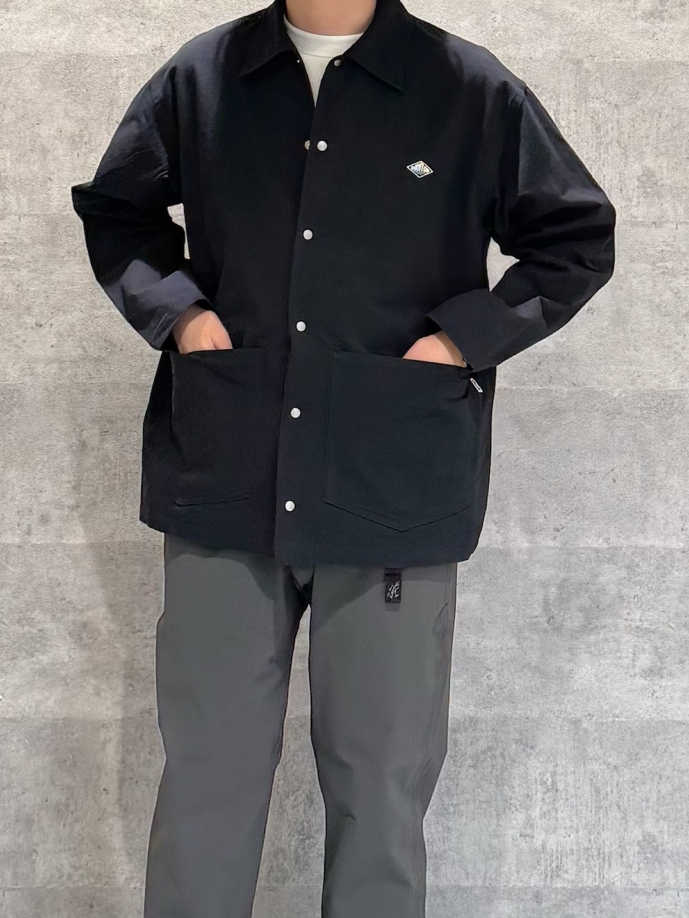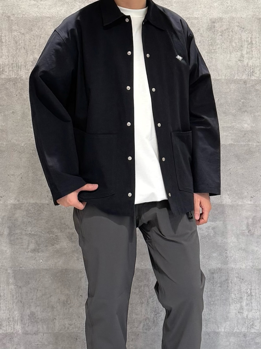 デザインはカバーオールで生地はシャツのように薄いので夏前まで着れるのがGOOD