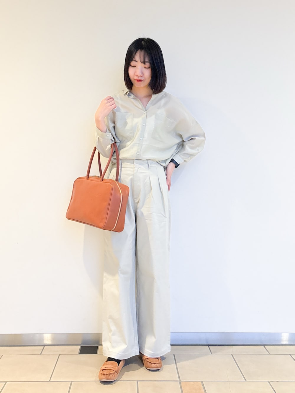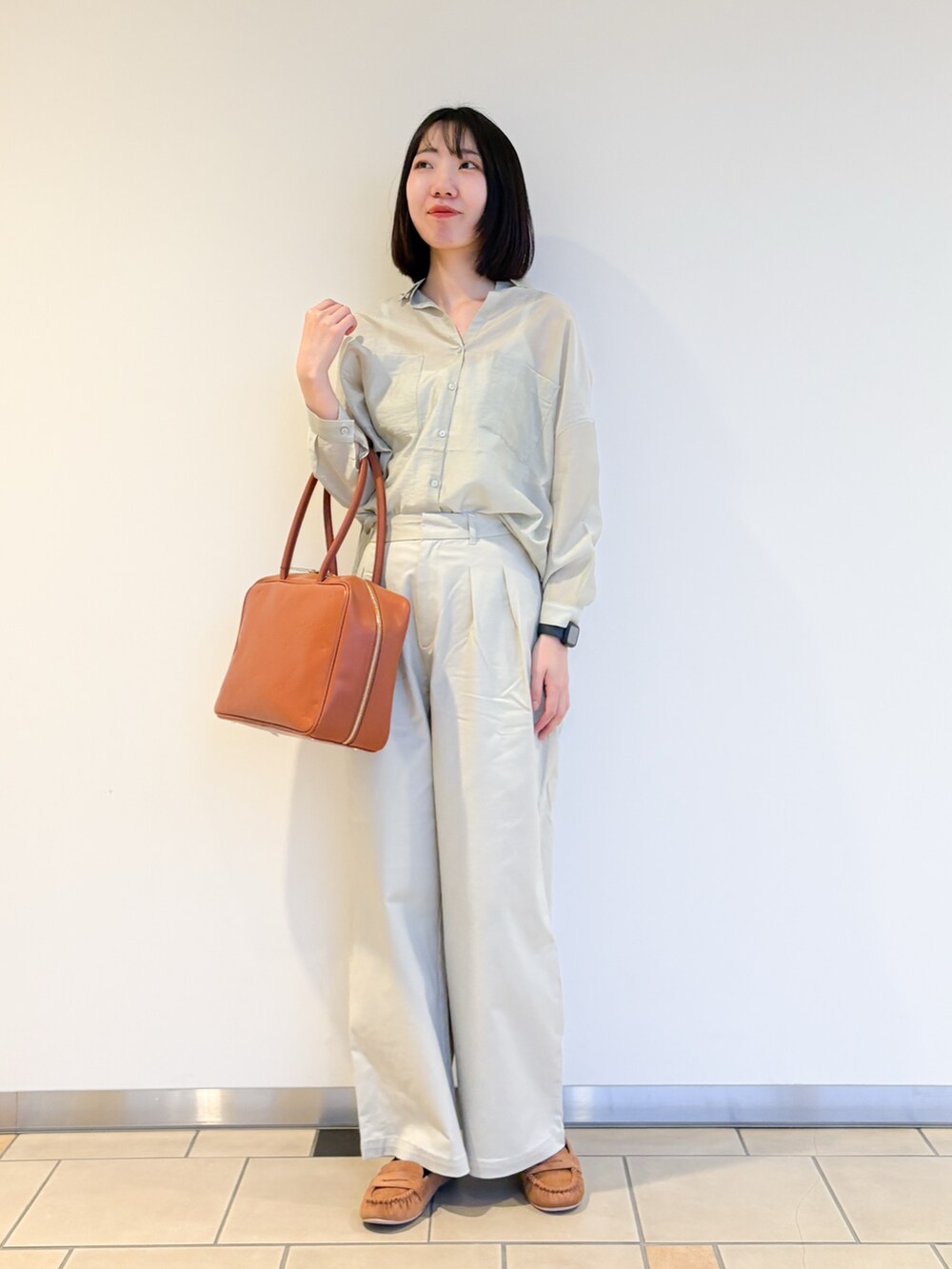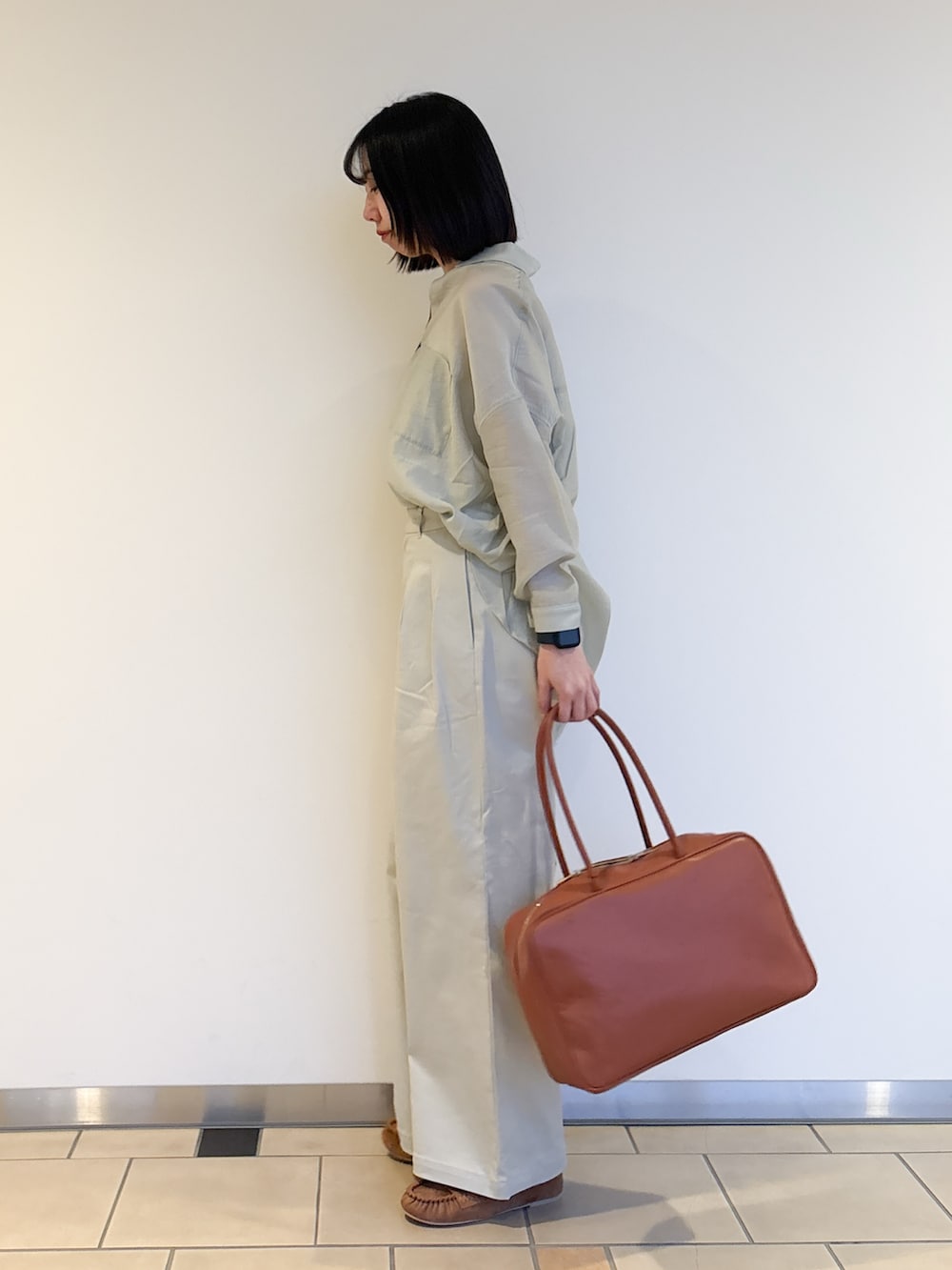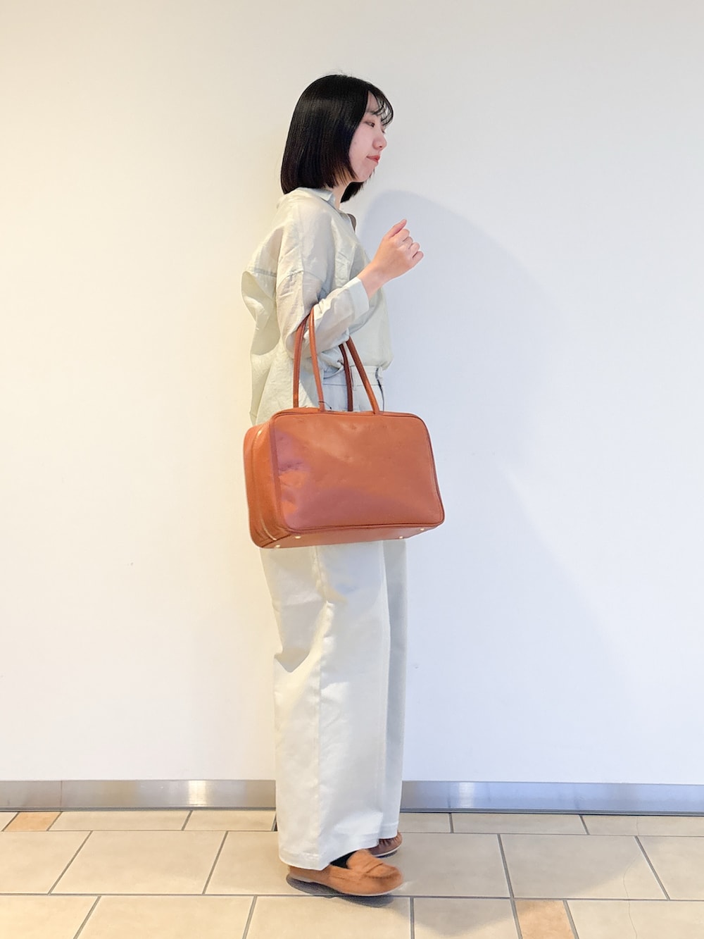大きめバッグと同じカラーのシューズでメリハリも忘れずに^^