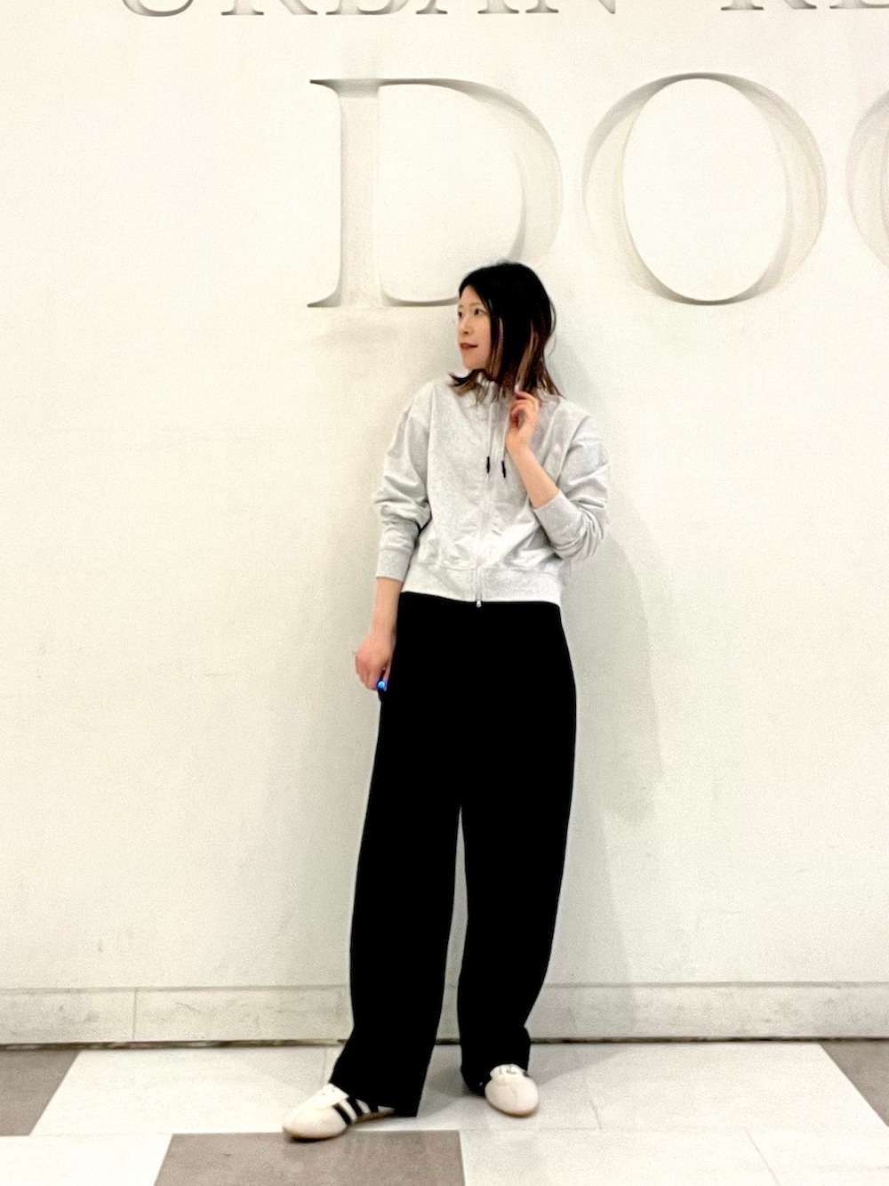 EKALのジップスウェットはコンパクトな着丈が可愛いです!!羽織りとしてはもちろん、スタンドカラーなので前を閉めて着るのもオススメです◎ちょうど良い厚さの生地感なので季節の変わり目に重宝します!