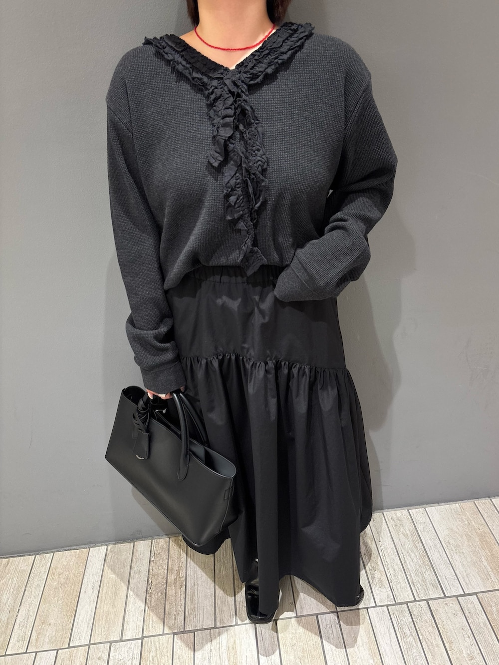 履いてみた感じ、ウエストは総ゴムなのでストレスフリー、ふわっとしたボリューム感が下半身の体型カバーにもなってとても良かったです👌🏻