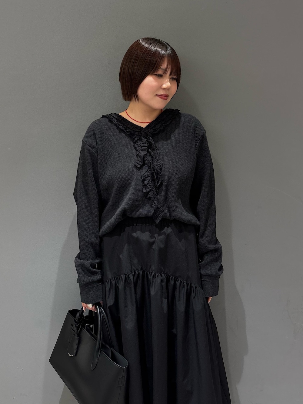 メンズライクなワッフル素材に首元のフリルのガーリーな感じが甘めカジュアルっぽくなってとても可愛いアイテムです🎀