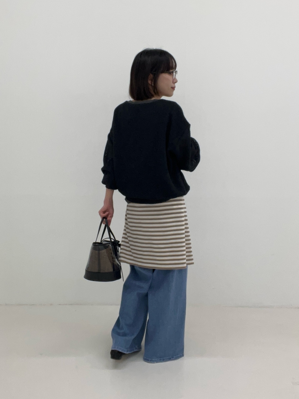 去年も大人気だった綿麻デニムのイージーパンツ🔍ボリュームたっぷりのワイドシルエットが脚を長く見せてくれます◎
