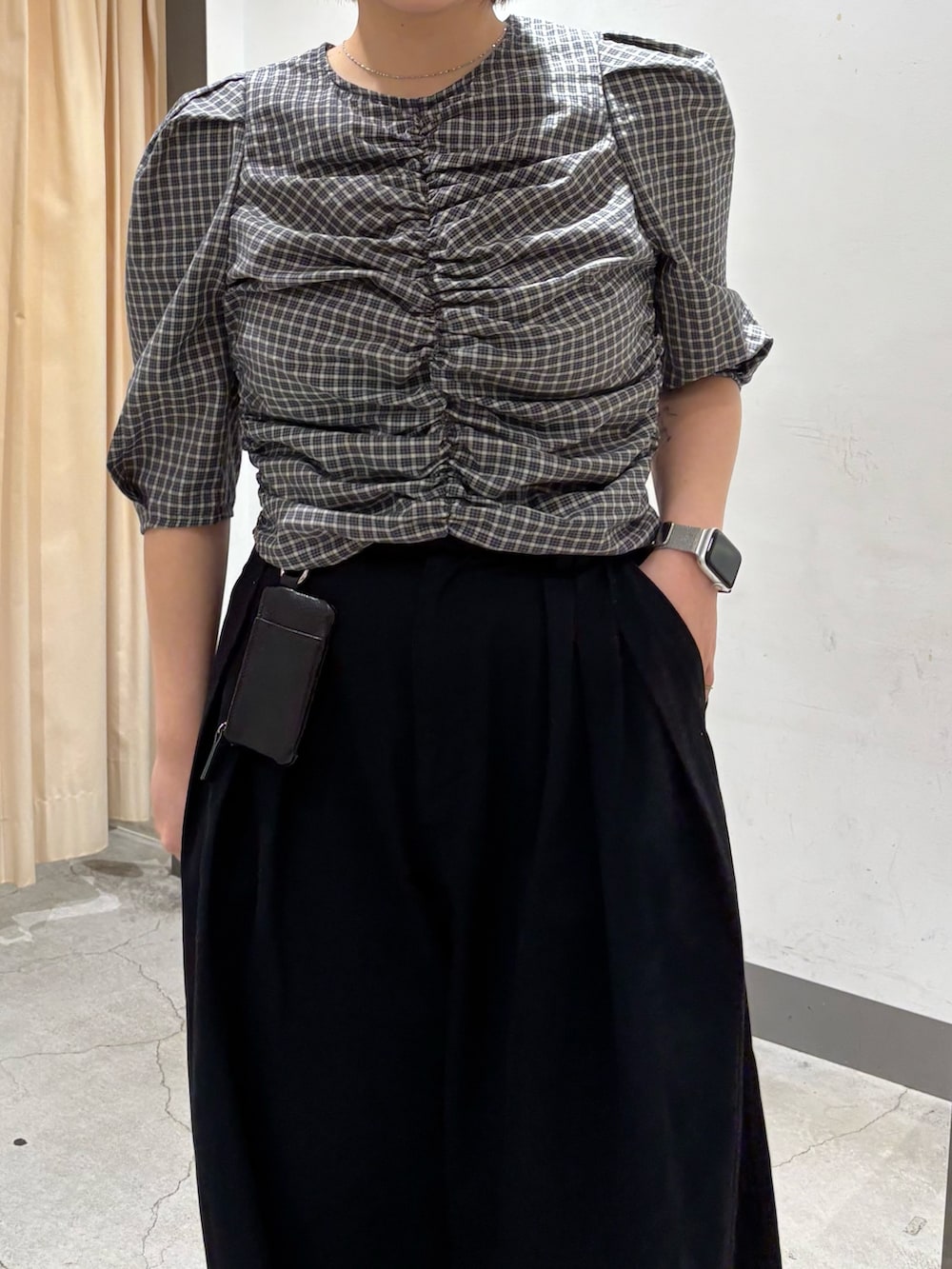 チェック柄にフロントのギャザーが目を惹くブラウスはこちら⸝꙳.˖