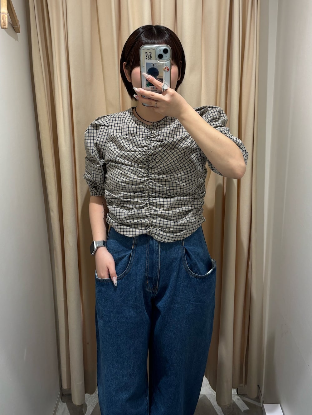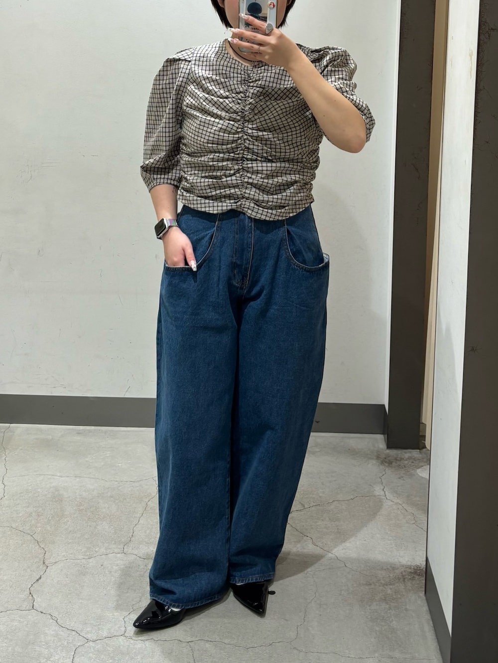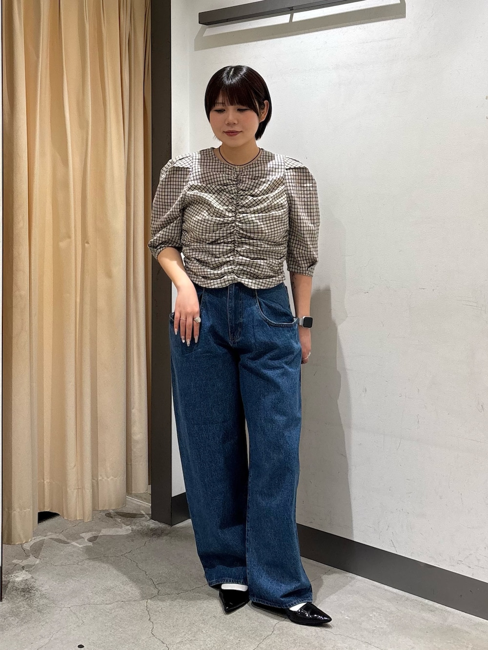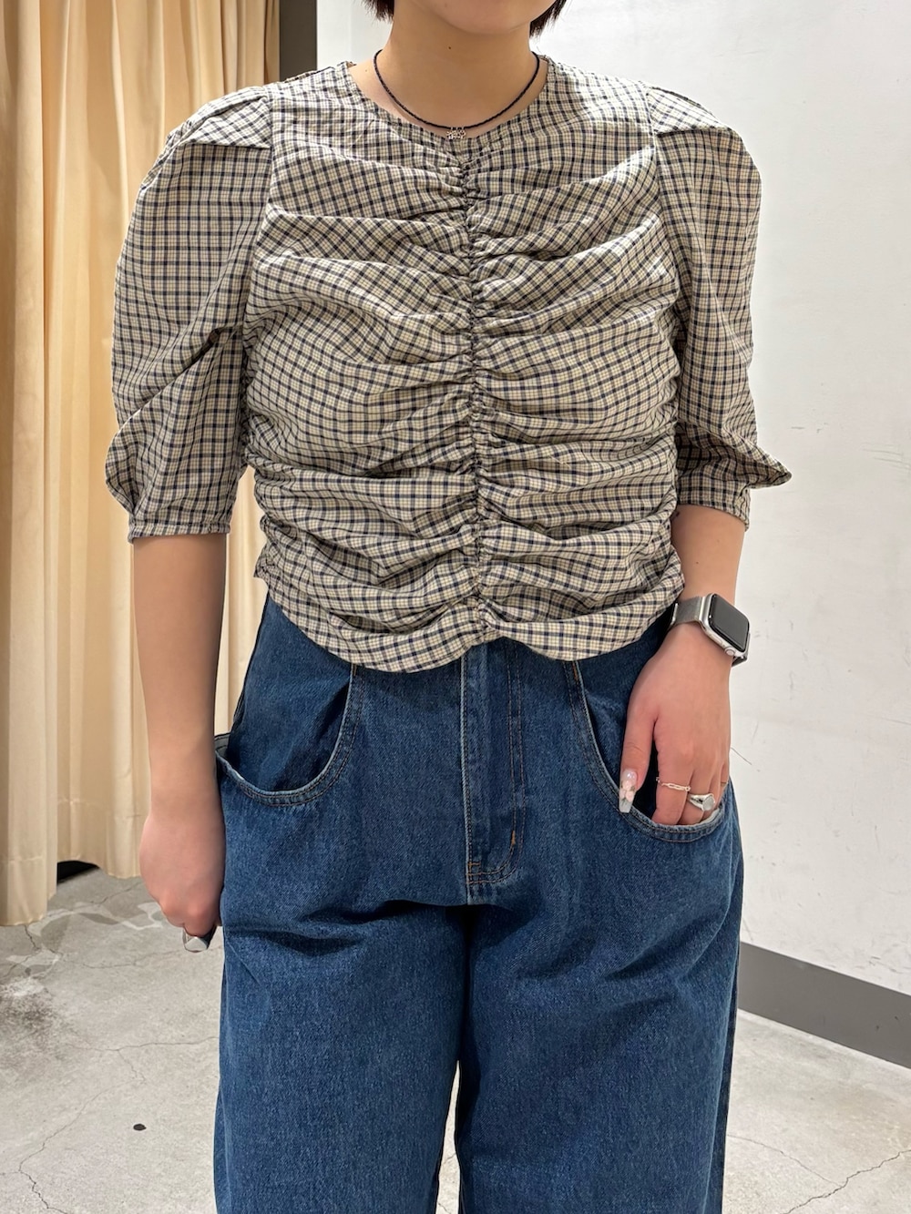 チェック柄にフロントのギャザーが目を惹くブラウスはこちら⸝꙳.˖