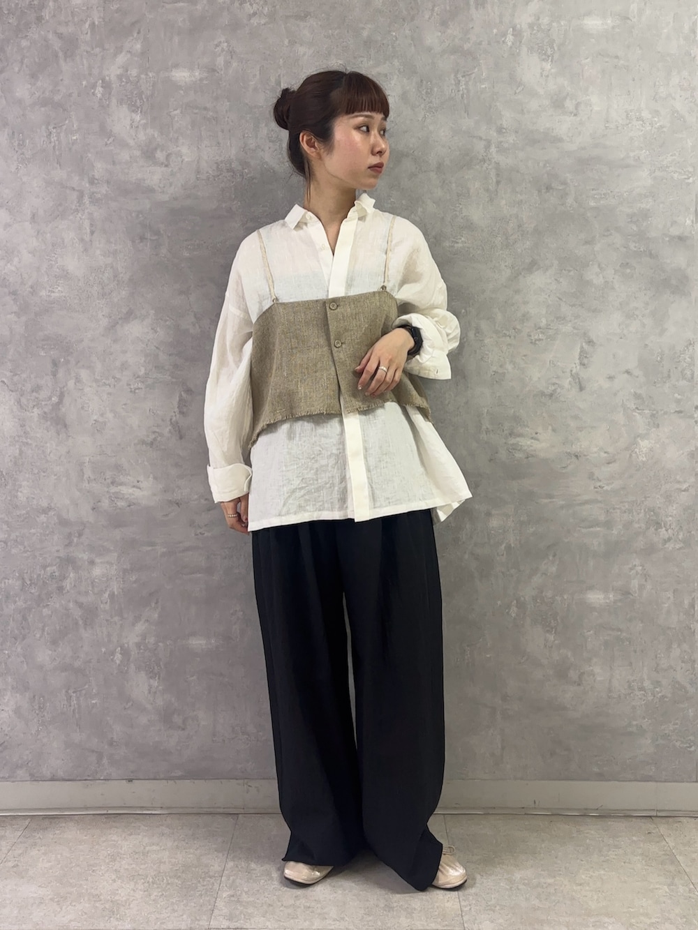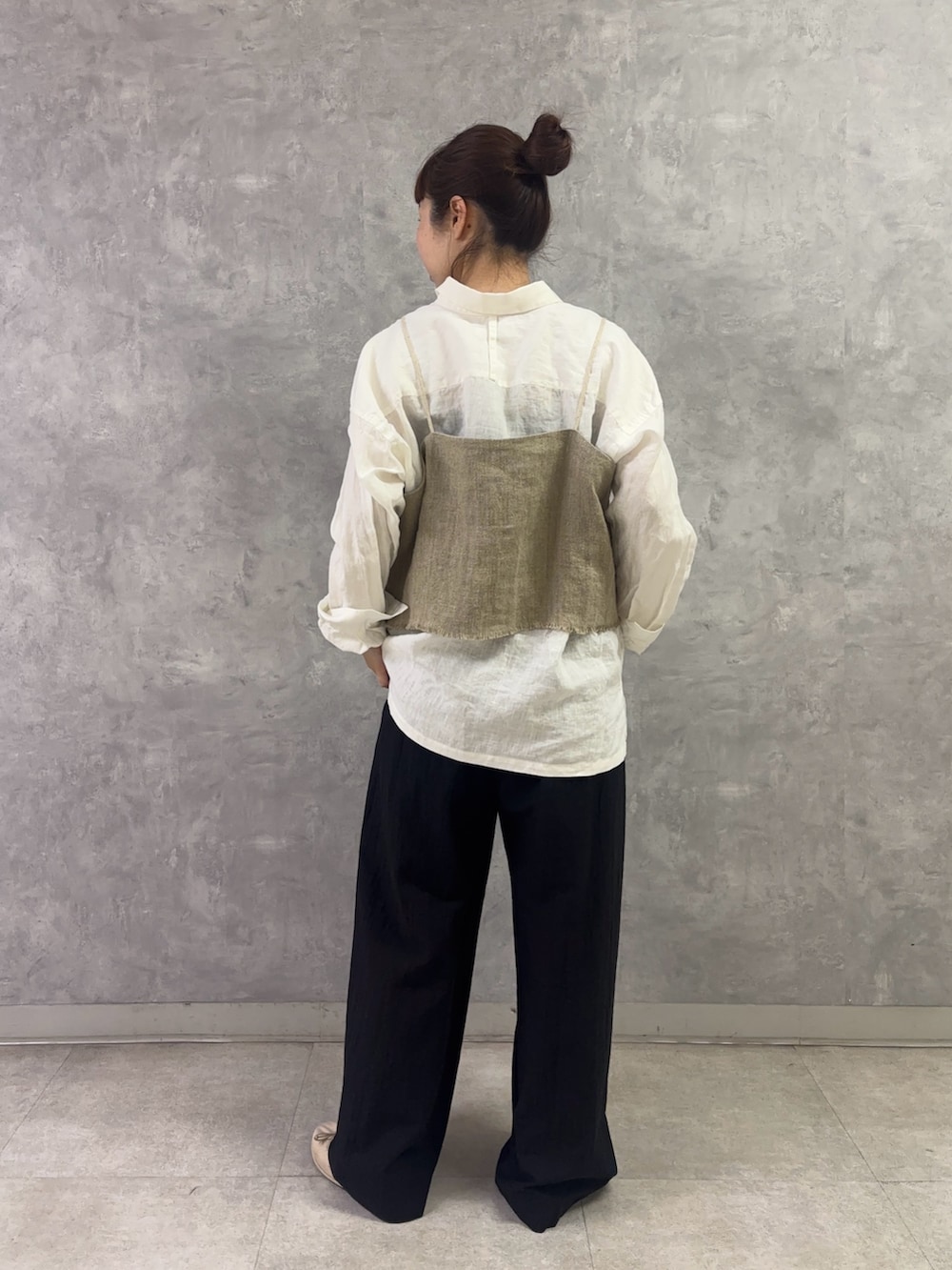 新宿店でも大人気の「セミウェットリネンキャミソール」は締め付け感ゼロのゆったりサイズ。薄手のカットソー、シャツ、トレーナーの上にまで合わせられます!