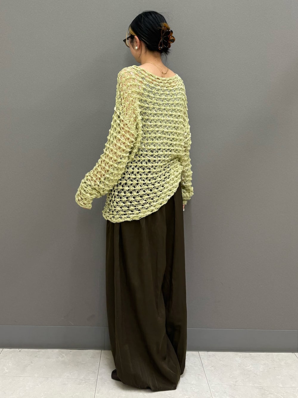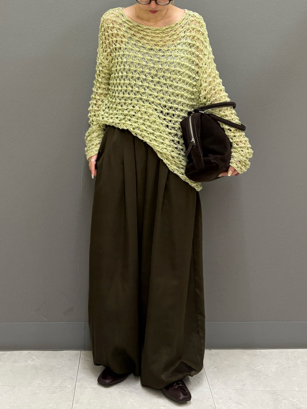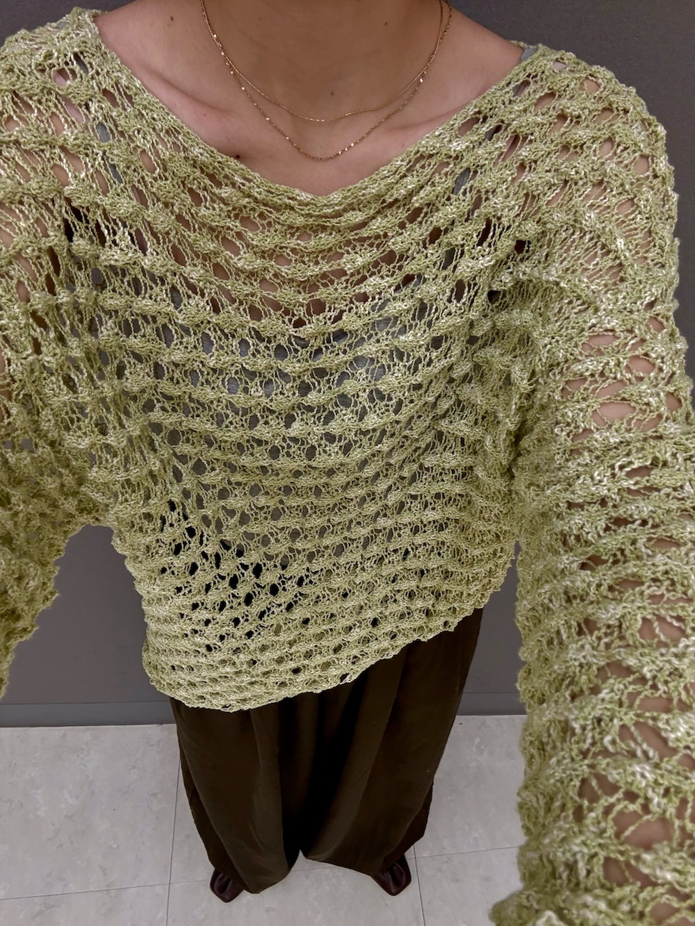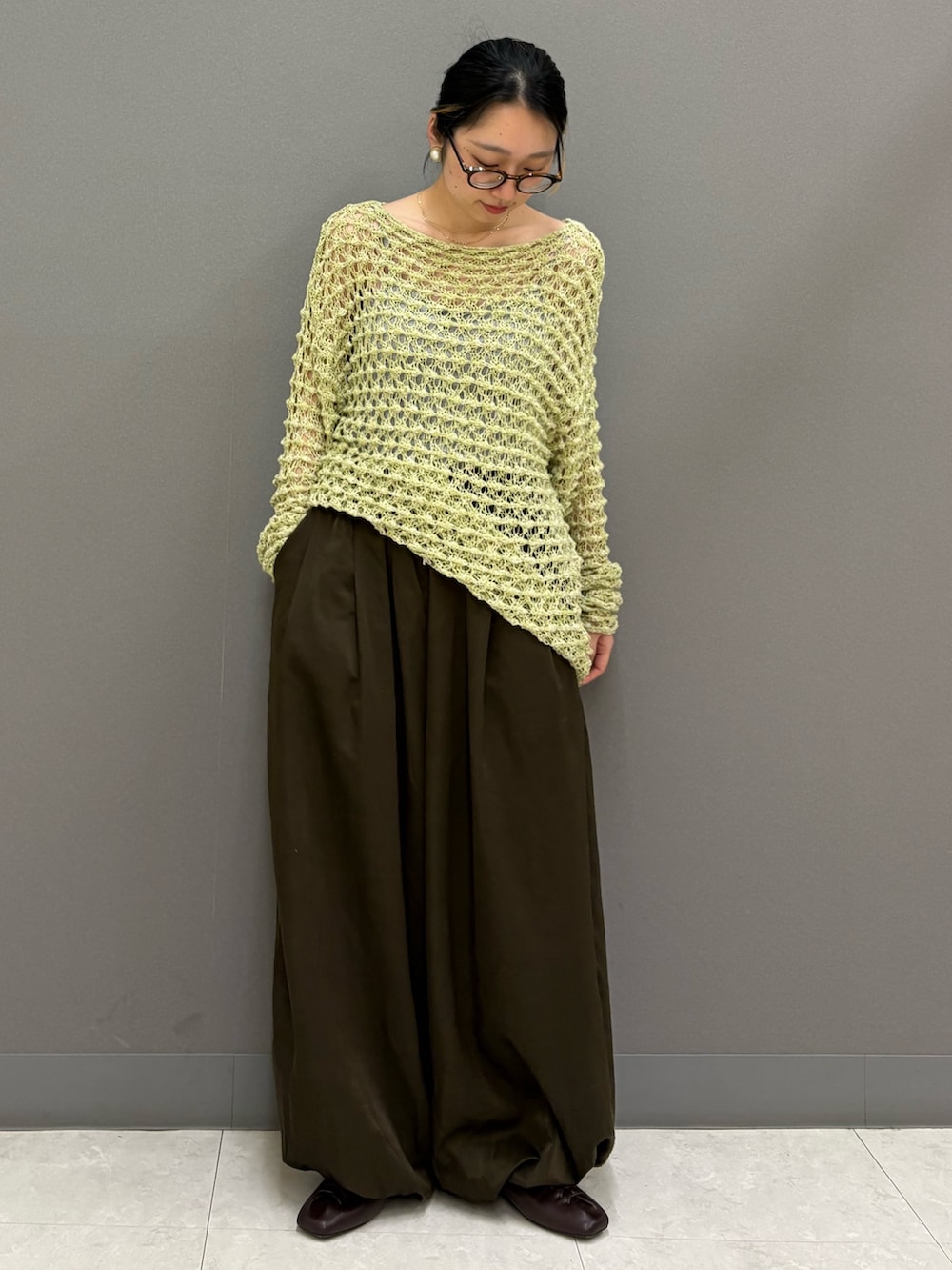 首元が開くニットなので、デコルテが見えて華奢見え、大人見えします。