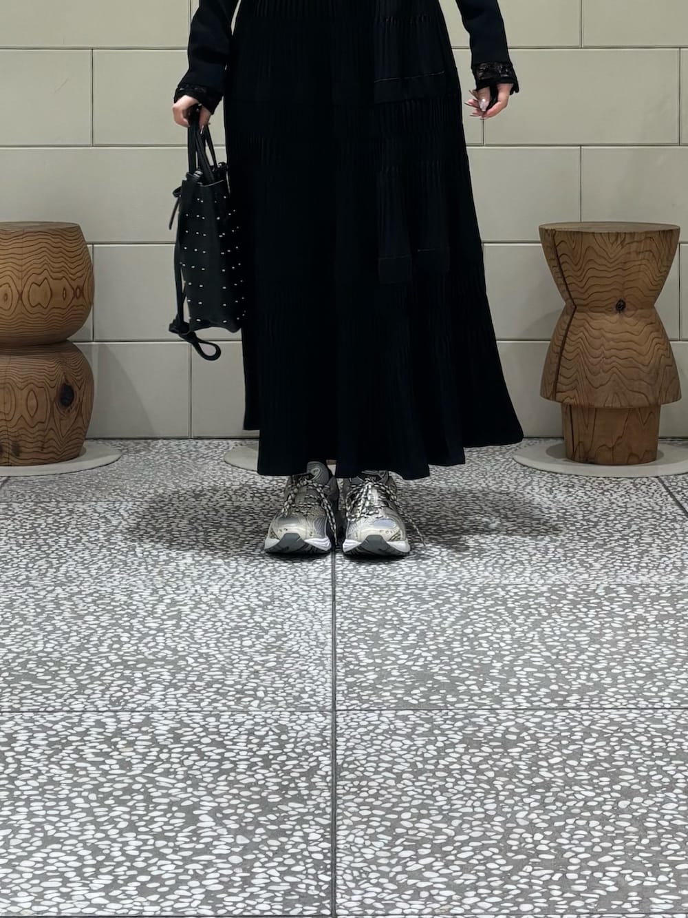 プリーツティアードの凹凸のあるデザインが存在感のでる春にぴったりの華やかなロングスカートです。【UR/プリーツティアードスカート/BLACK】