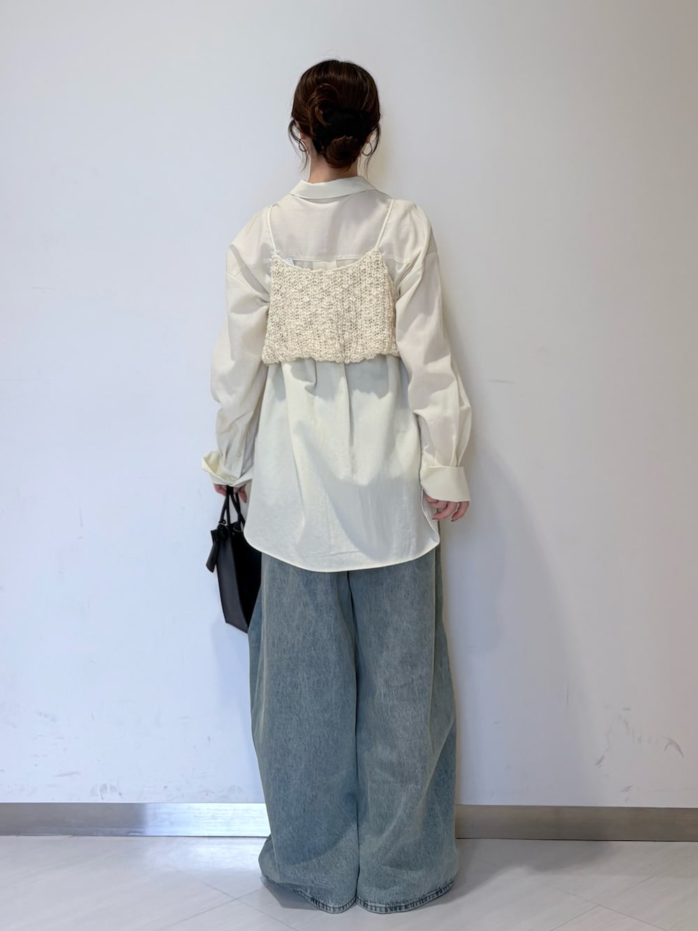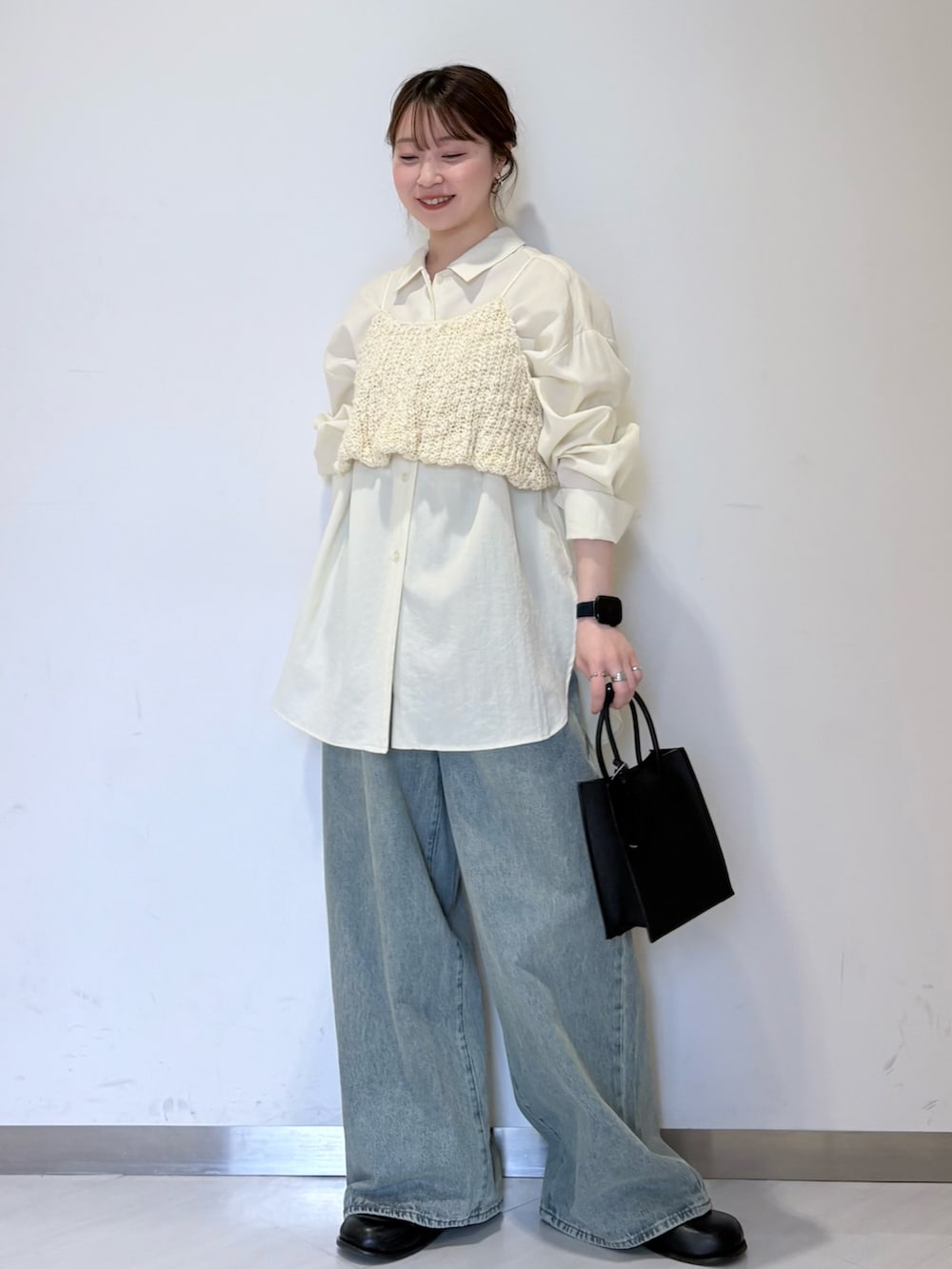 春にシャツやシアーのアイテムが増えてくる中で異素材のニットを合わせてあげるのが◎