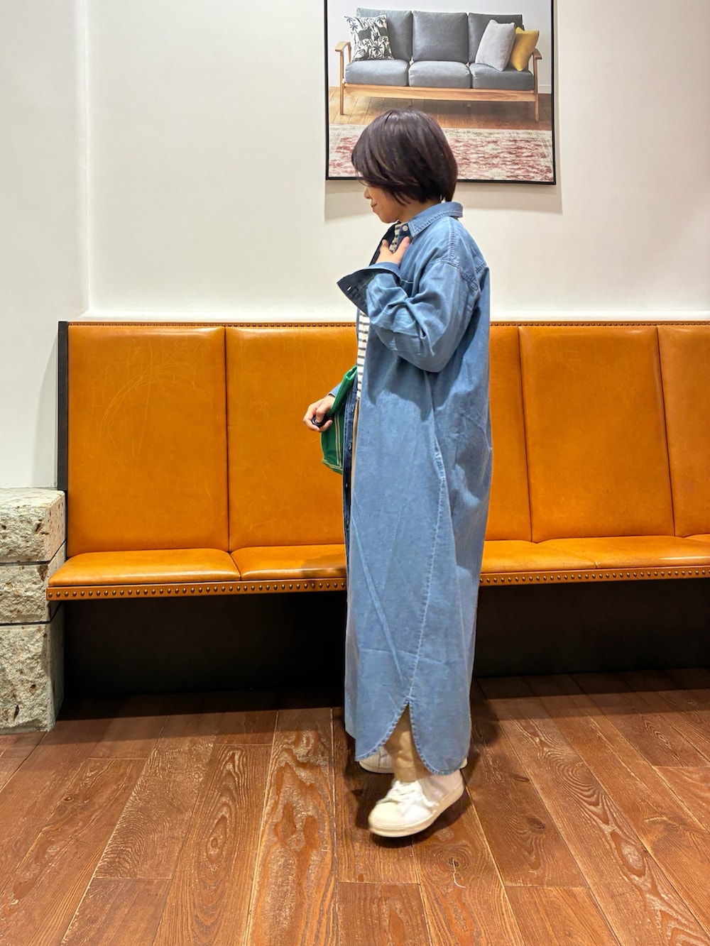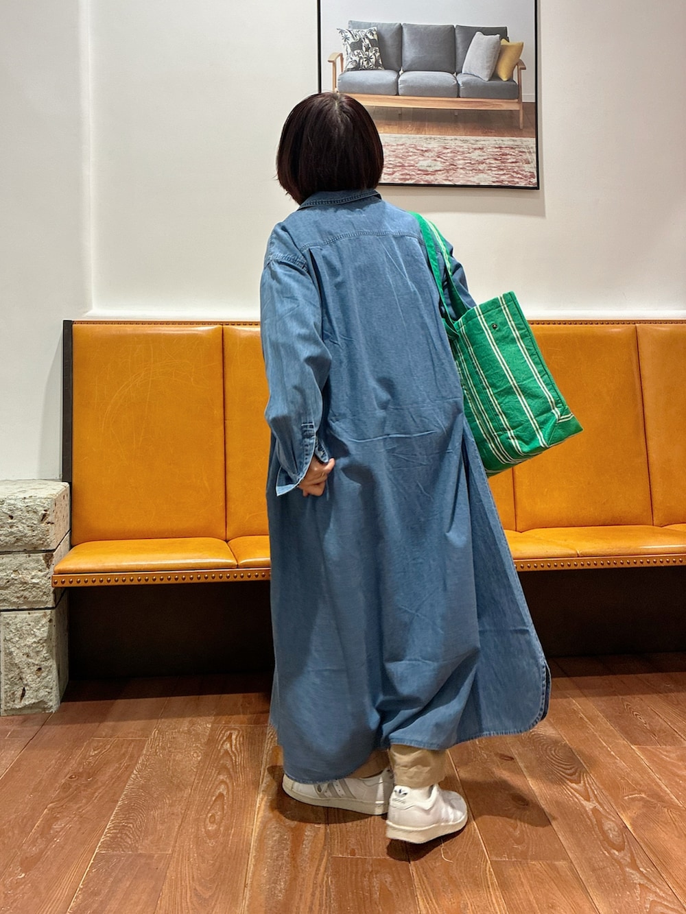 柔らかいコットンデニムのワンピースを