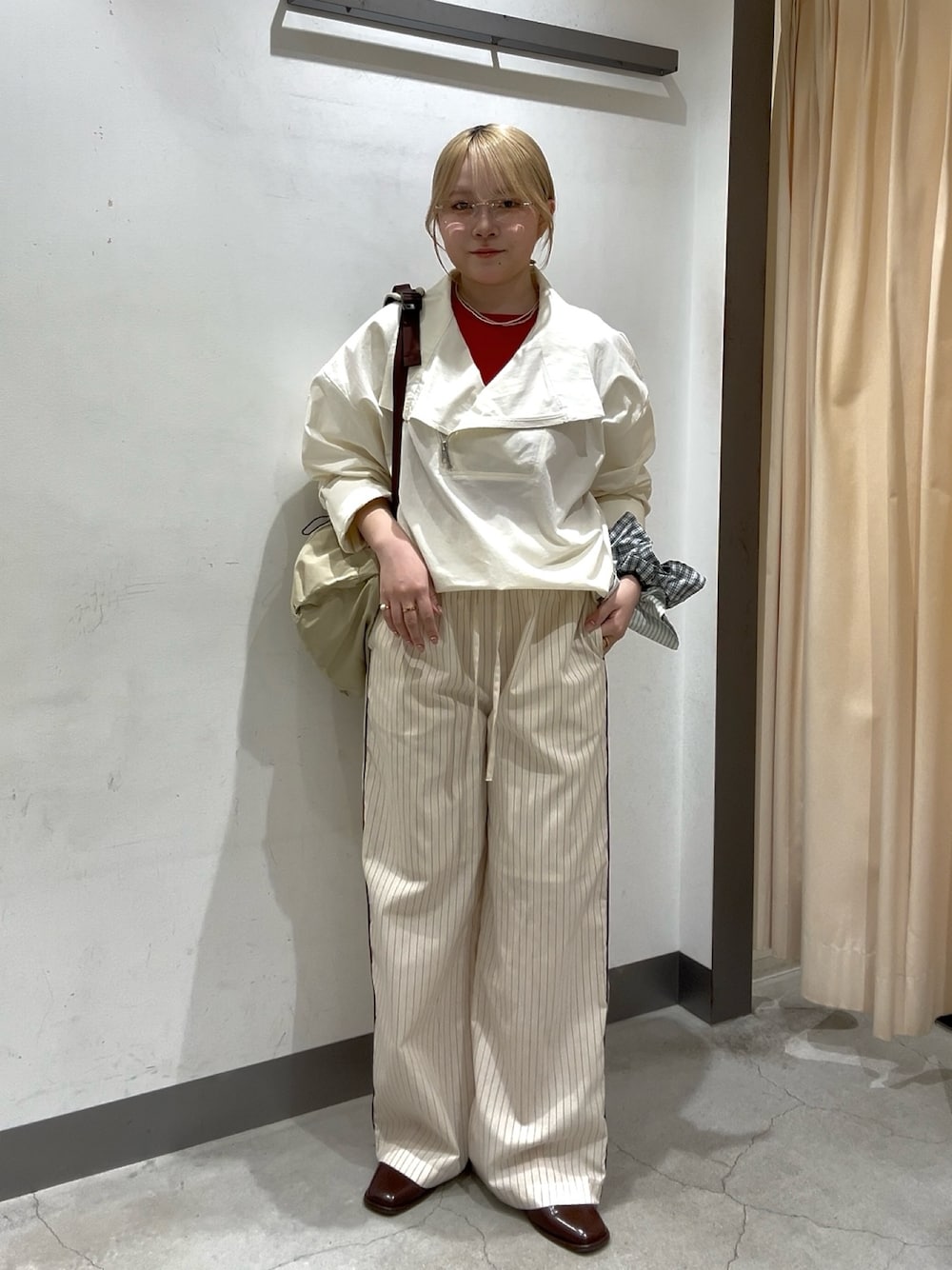 着てみた感じ、上半身の厚みや肩幅を強調してしまう印象だったのですが、前だけインしたりベルトでウエストマークしたり、肩を落としてワンショルダー風に着てみたりすれば問題なかったです😽