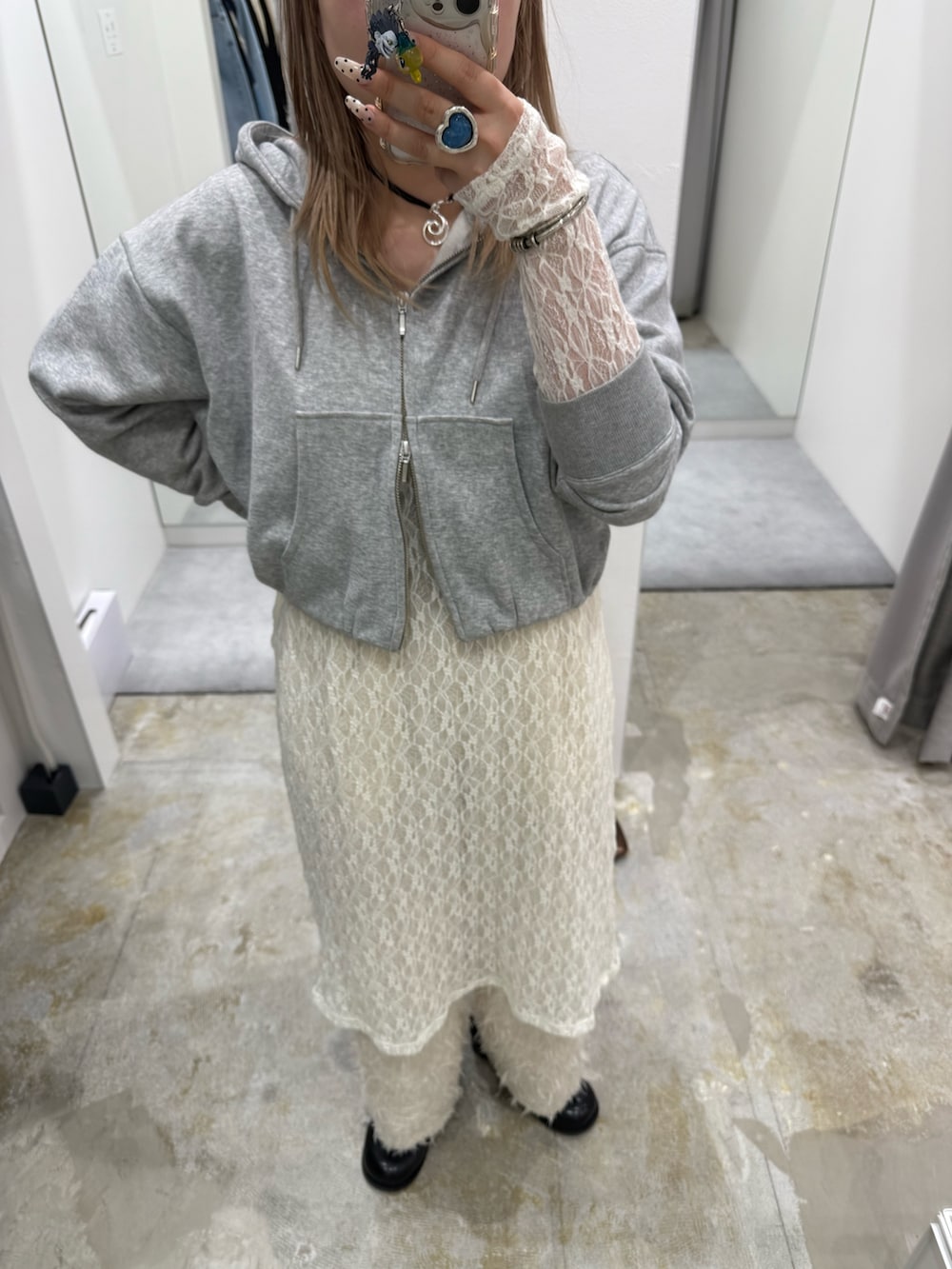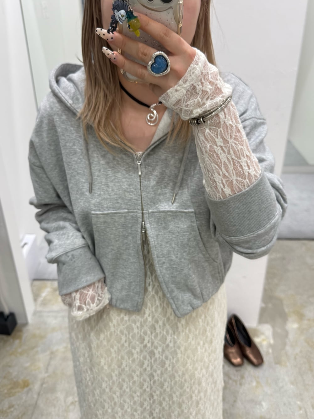レースのワンピース程よくゆったりで重ね着しやすいです〜!タイトすぎないのがポイント!!
